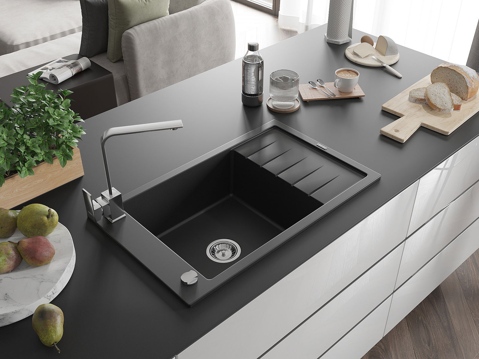 The sink is made from high-quality granite. It serves as an elegant and, above all, practical addition to any kitchen, regardless of its style. The high quality and durability of granite ensure many years of use.