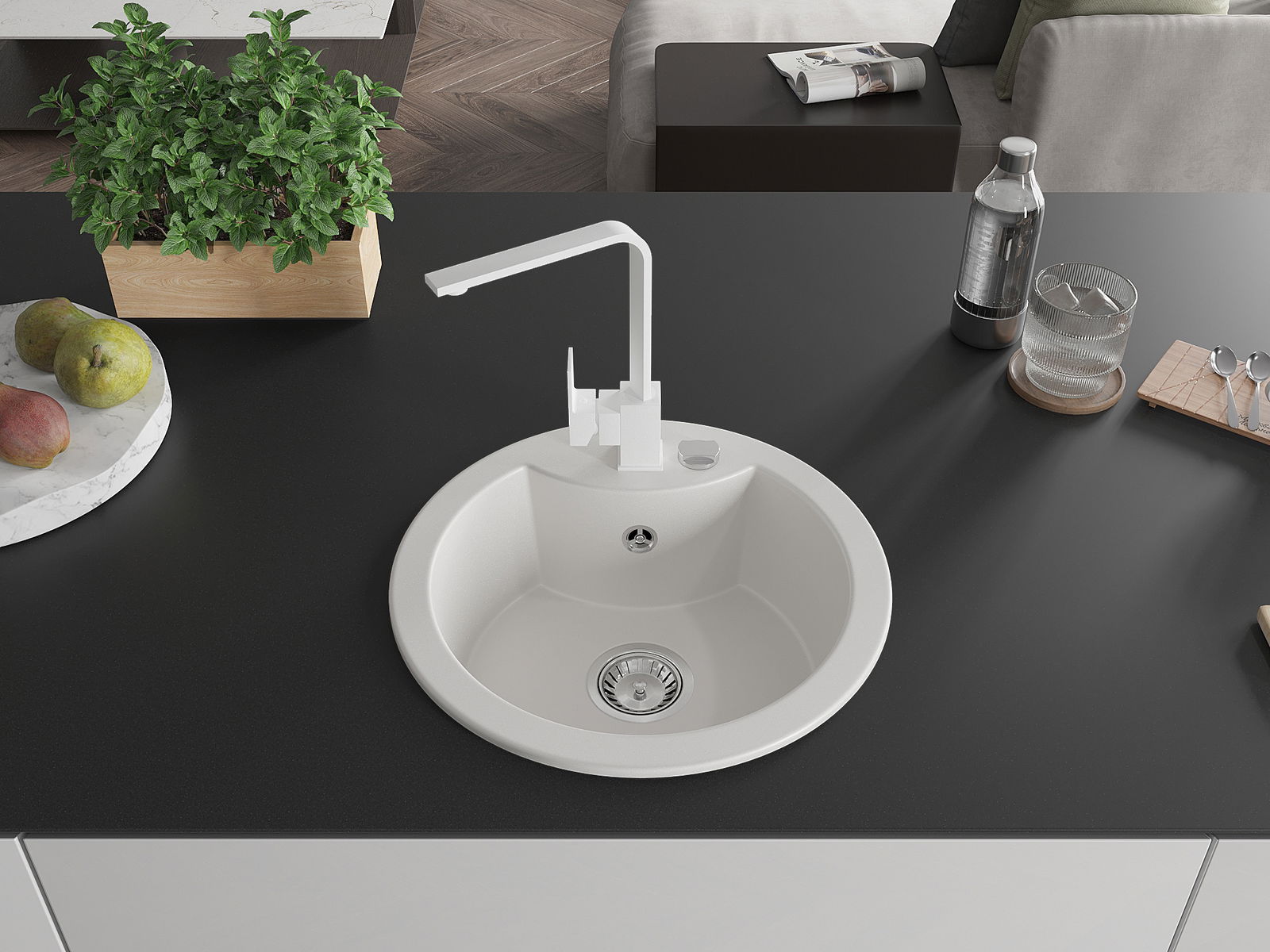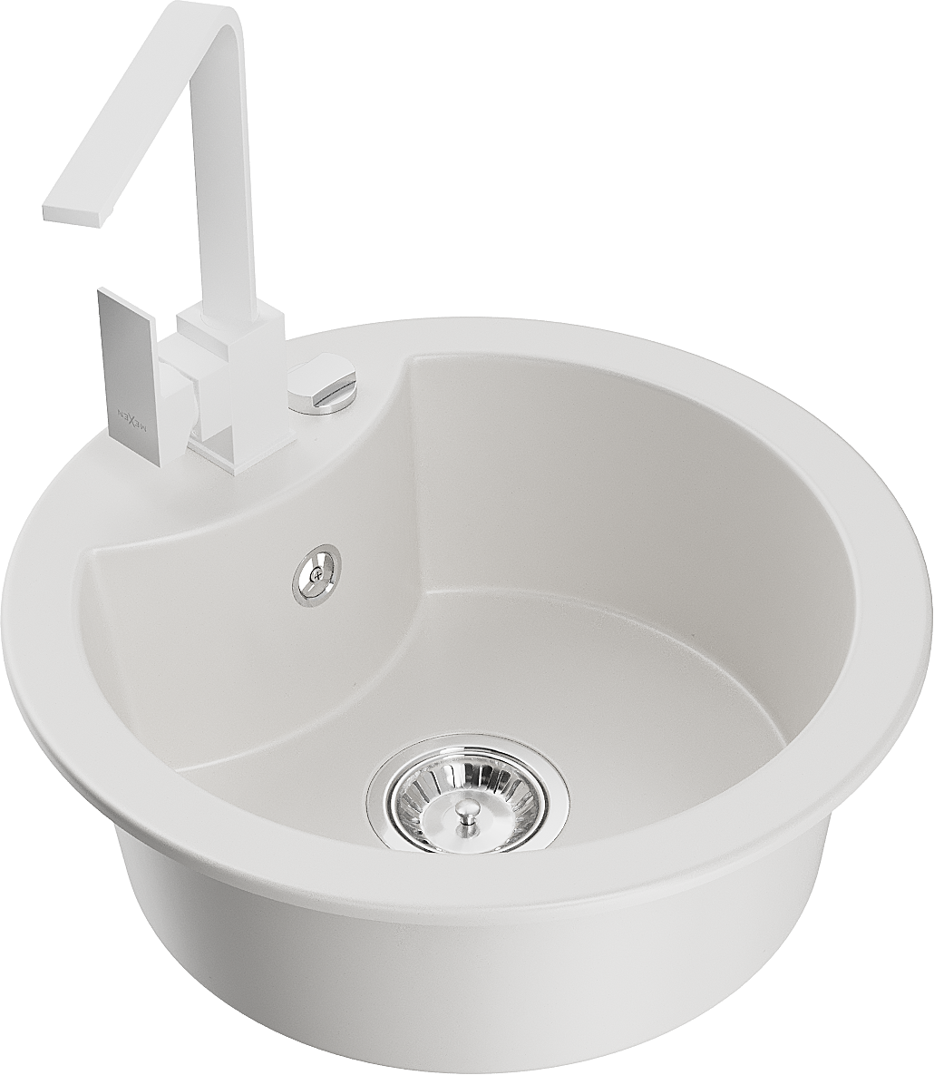 The surface of the sink is resistant to stains and discolouration, making it easy to maintain cleanliness and retain its colour for a long time of use. An aesthetic and practical addition to any kitchen.