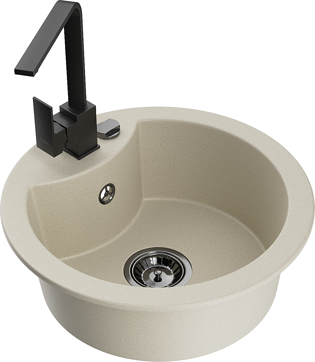 Mexen Diego single-bowl granite kitchen sink with Rita tap, beige - 6512-69-670300-70