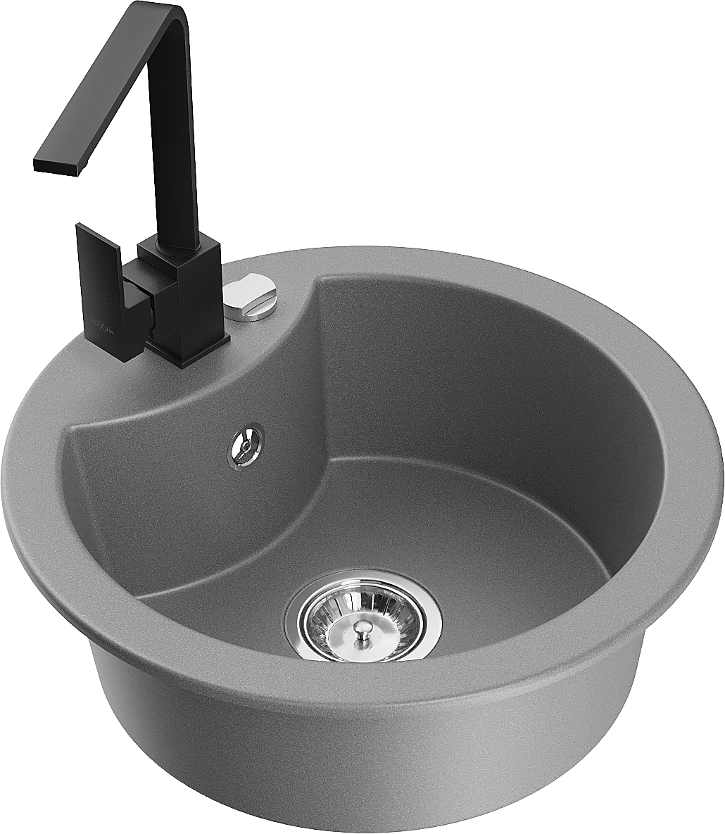 Mexen Diego granite sink 1-bowl with Rita kitchen tap, grey - 6512-71-670300-70