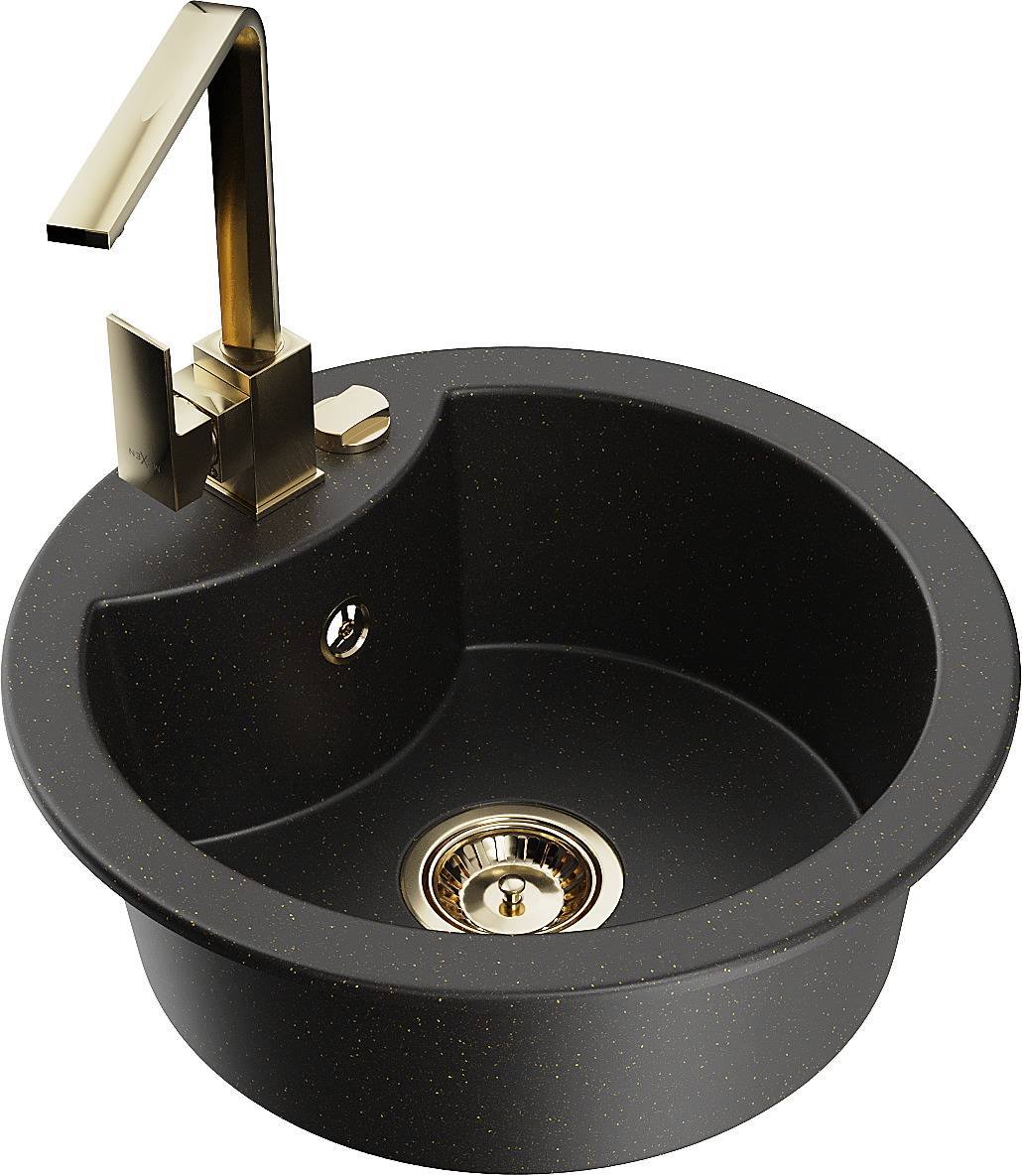 Mexen Diego single-bowl granite sink with Rita kitchen tap, black/gold metallic - 6512-75-670300-50