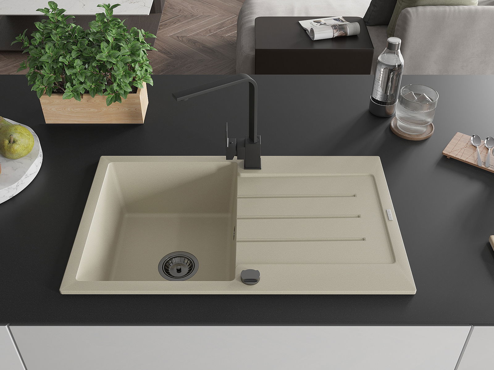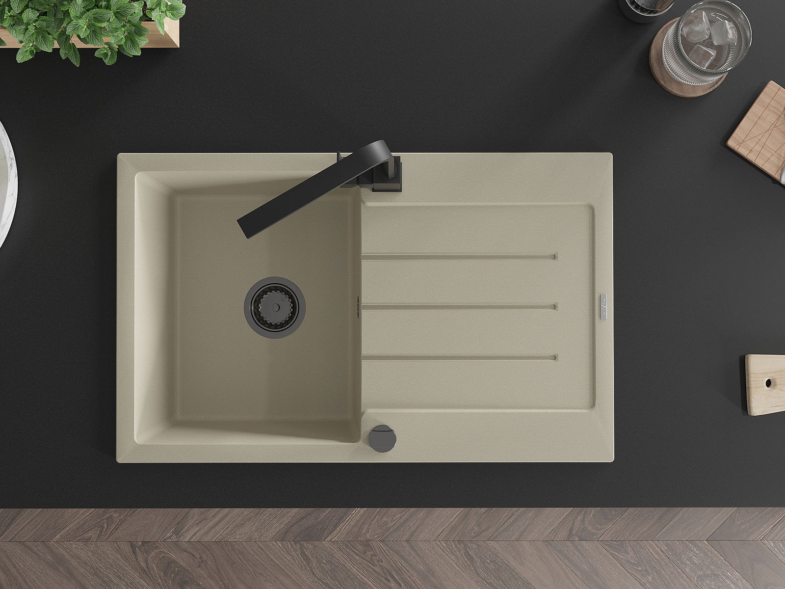 The sink is made from high-quality granite. It serves as an elegant and, above all, practical addition to any kitchen, regardless of its style. The high quality and durability of granite ensure many years of use.