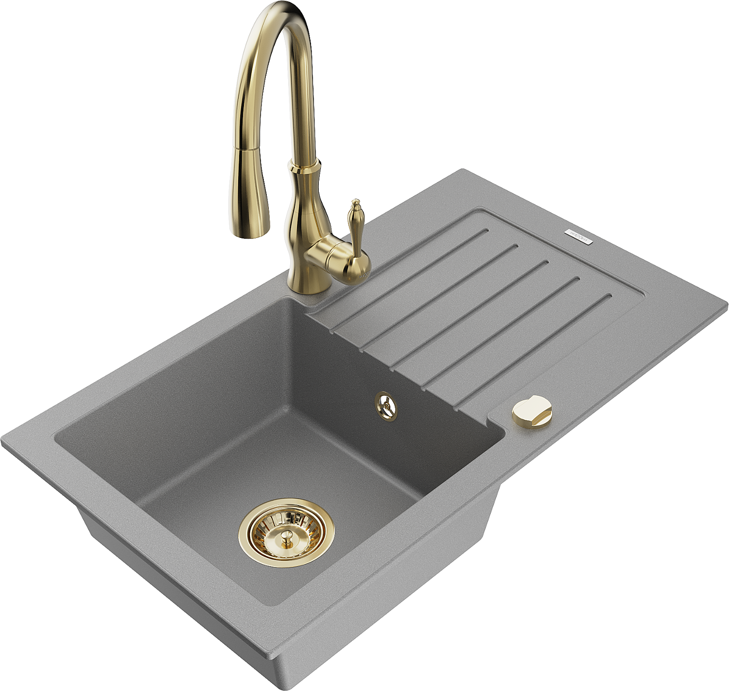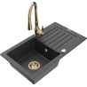 Mexen Pablo 1-Basin Granite Sink with Drainer and Savita Kitchen Tap, Grey - 6510-71-672601-50
