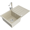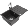 Mexen Bruno 1-bowl granite sink with drainer and Rita kitchen tap, grey - 6513-71-670300-00