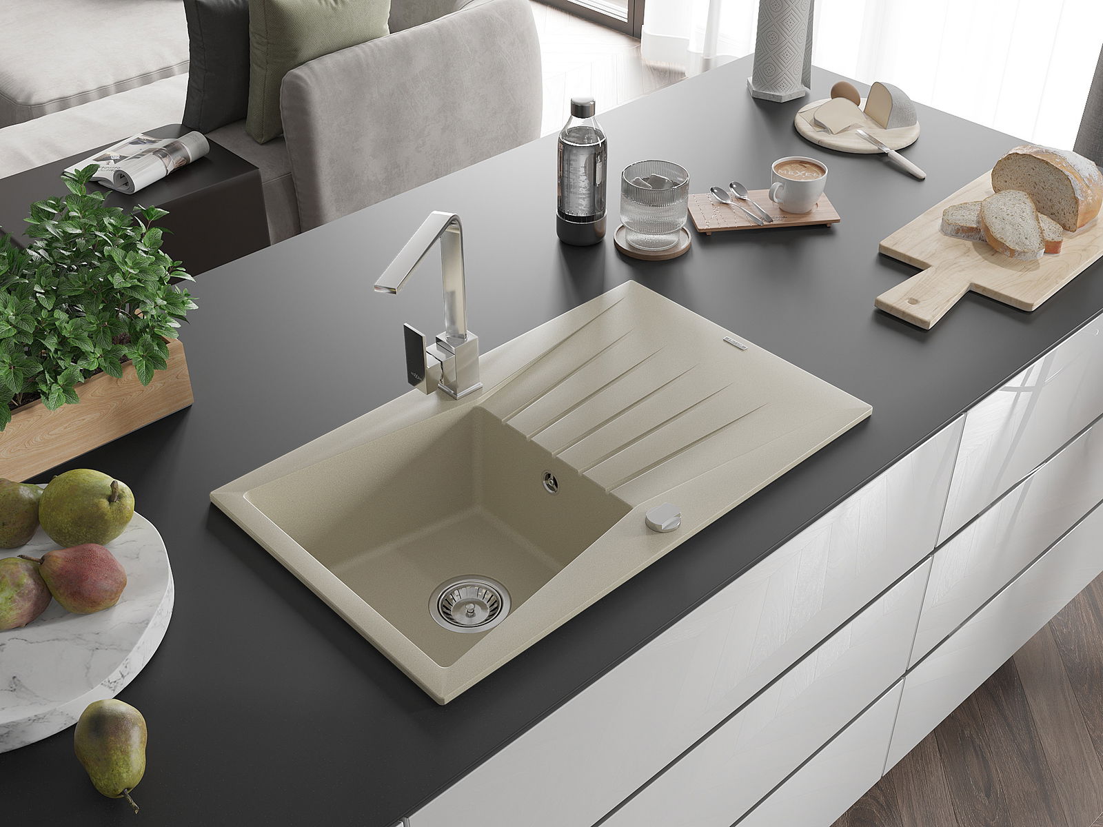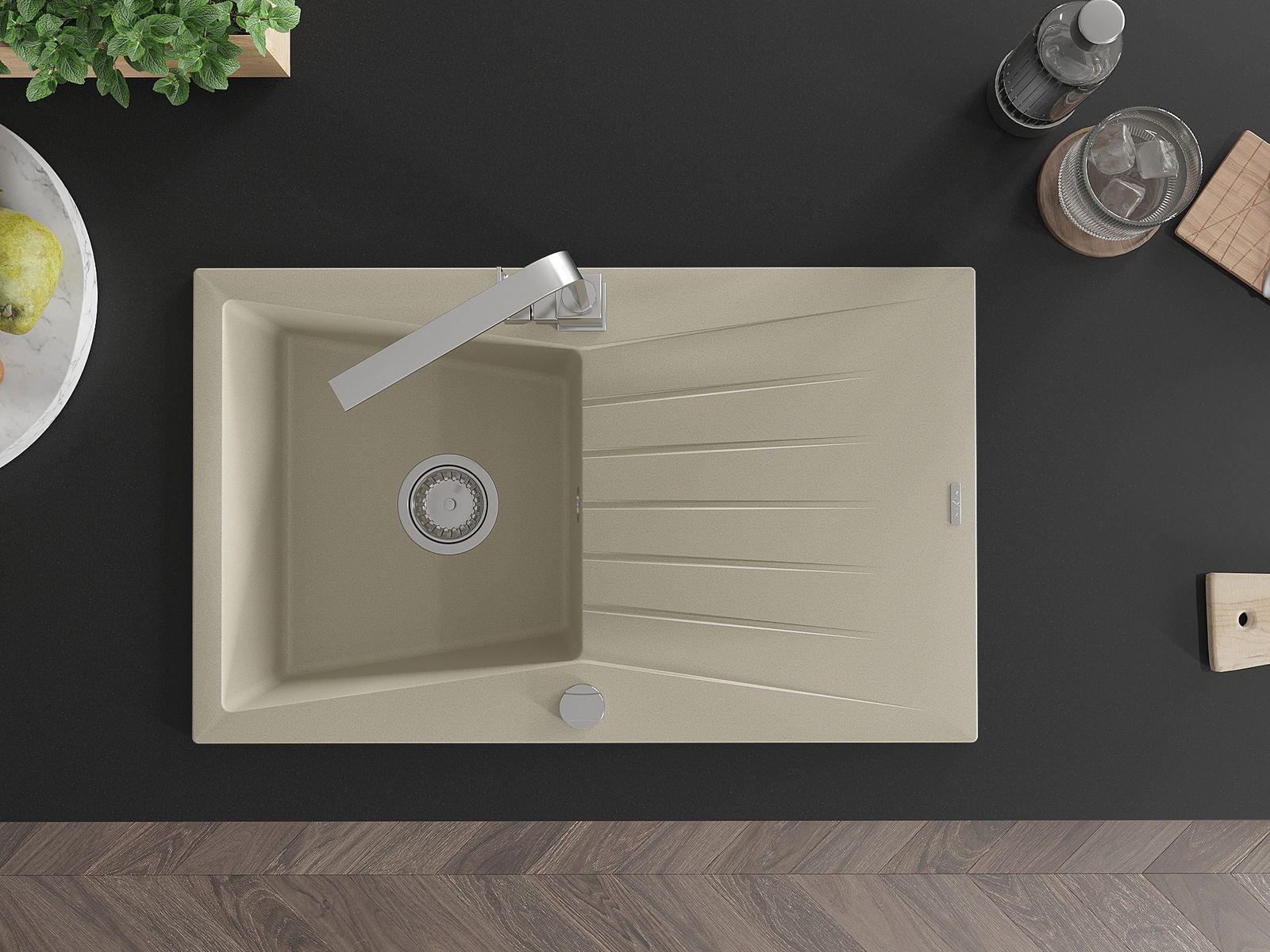 The sink is made from high-quality granite. It serves as an elegant and, above all, practical addition to any kitchen, regardless of its style. The high quality and durability of granite ensure many years of use.
