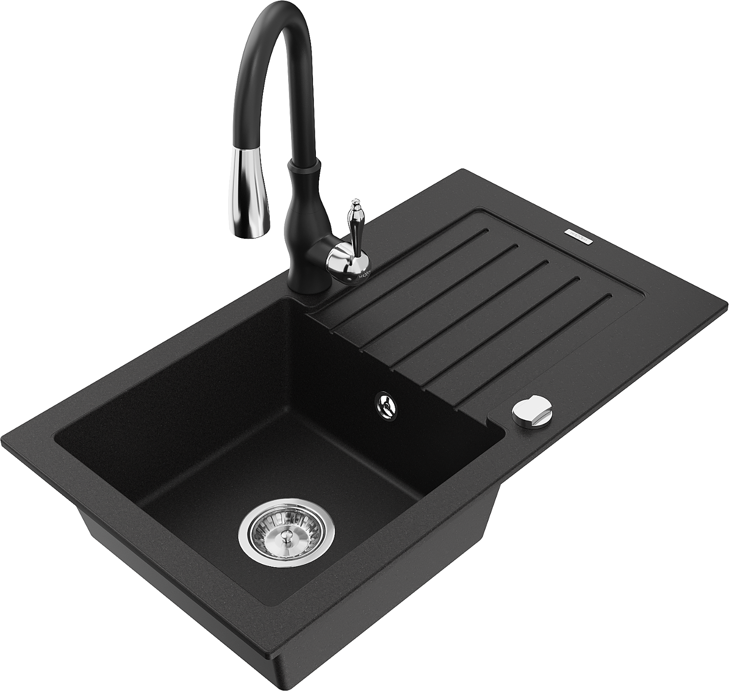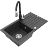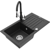 Mexen Pablo granite sink 1-bowl with drainer and Savita kitchen tap, black - 6510-77-672601-70