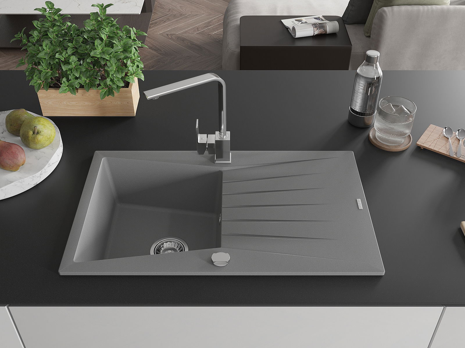 The sink is made from high-quality granite. It serves as an elegant and, above all, practical addition to any kitchen, regardless of its style. The high quality and durability of granite ensure many years of use.