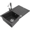 Mexen Cesar single-bowl granite sink with drainer and Rita kitchen tap, grey - 6514-71-670300-00