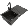 Mexen Cesar 1-bowl granite sink with drainer and Rita kitchen tap, black/silver metallic - 6514-73-670300-70-B