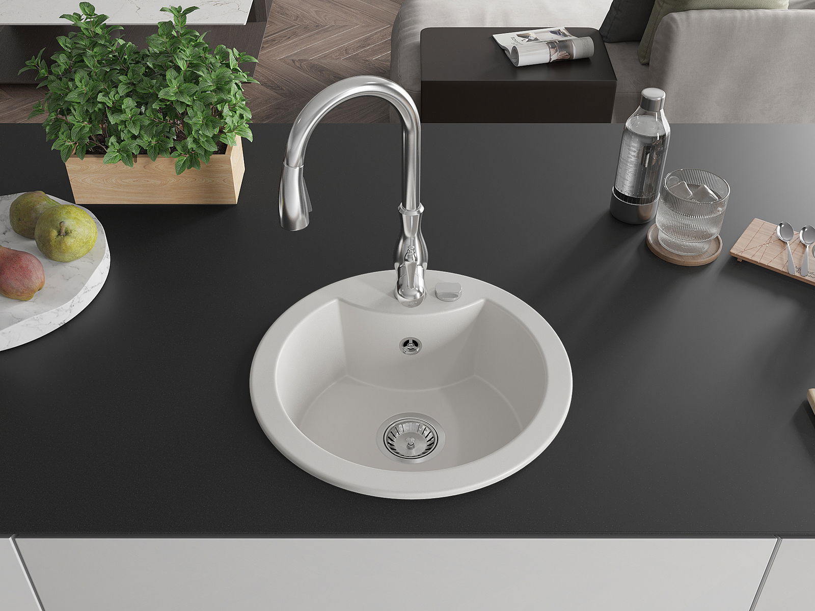 The surface of the sink is resistant to stains and discolouration, making it easy to maintain cleanliness and retain its colour for a long time of use. An aesthetic and practical addition to any kitchen.
