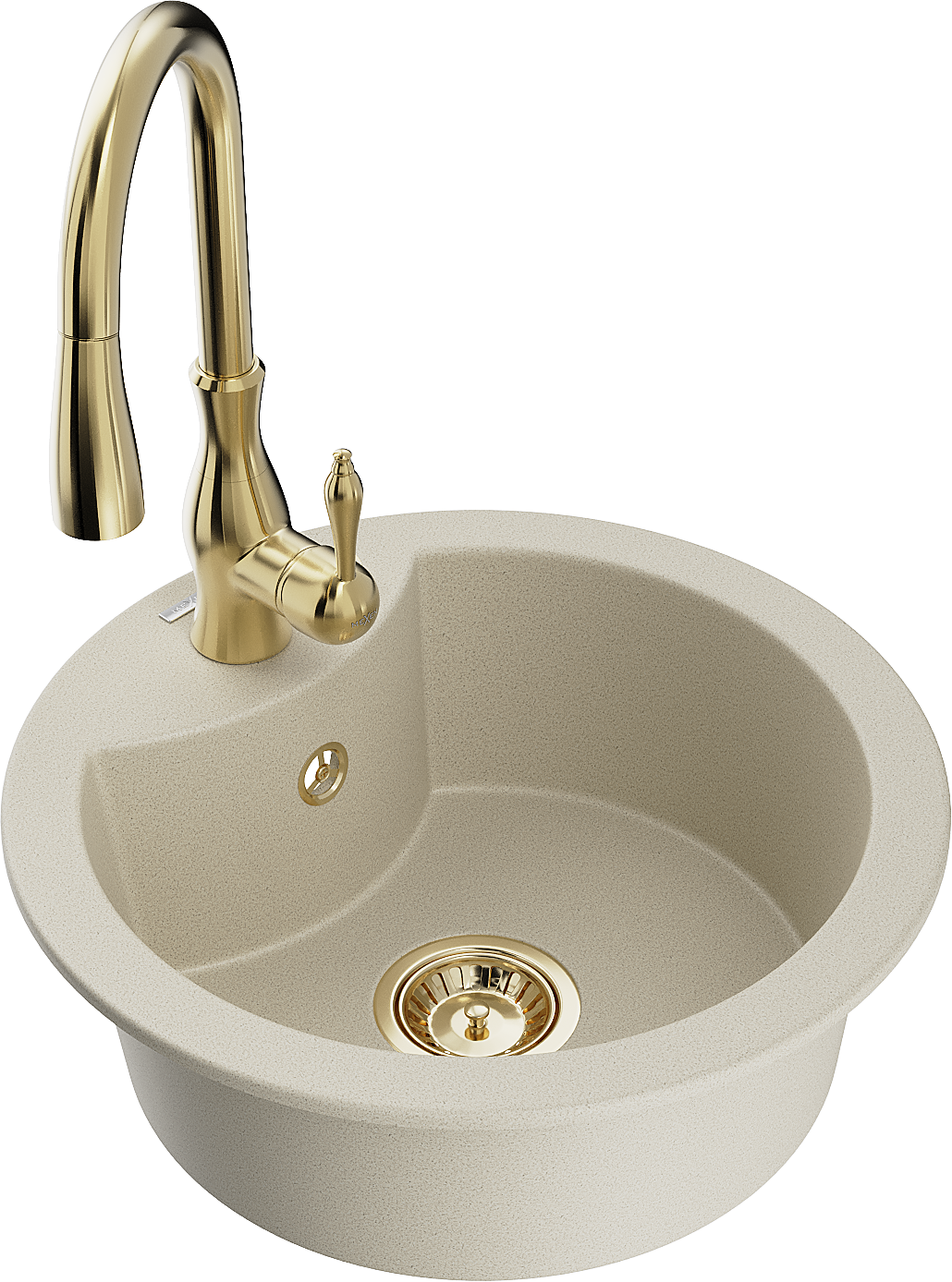 Mexen Diego granite sink 1-bowl with Savita kitchen tap, beige - 6512-69-672601-50