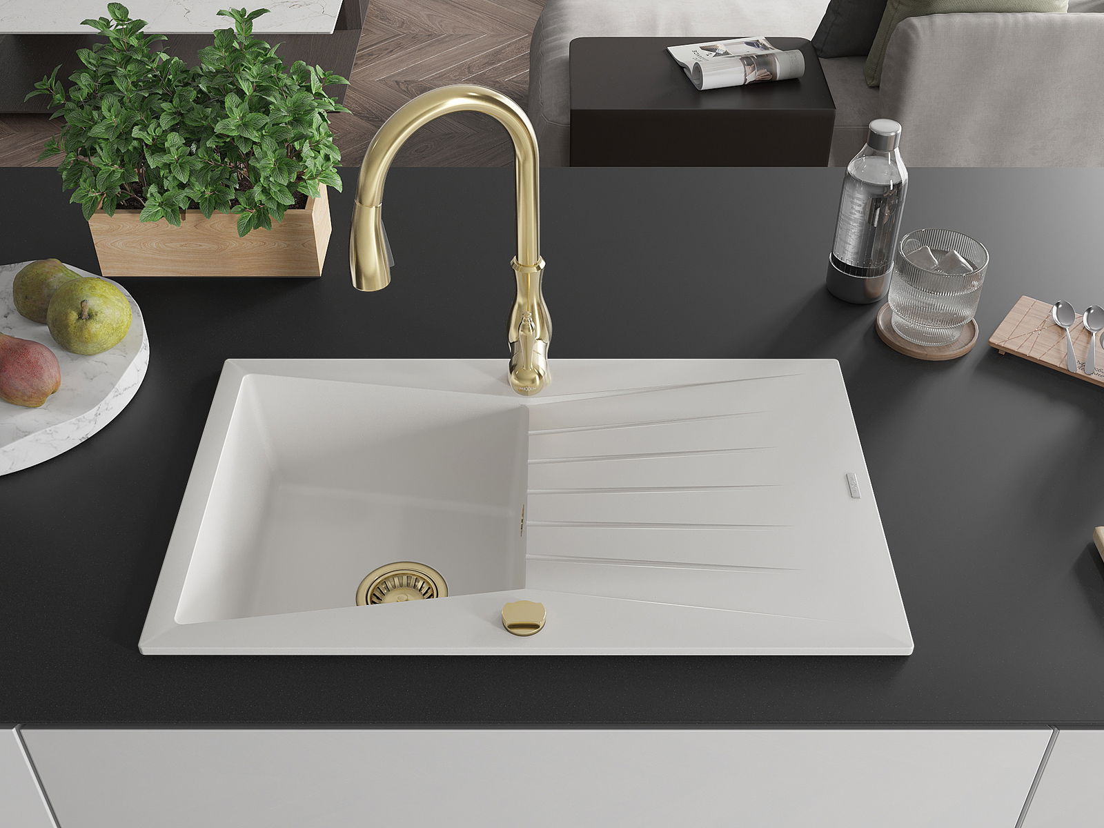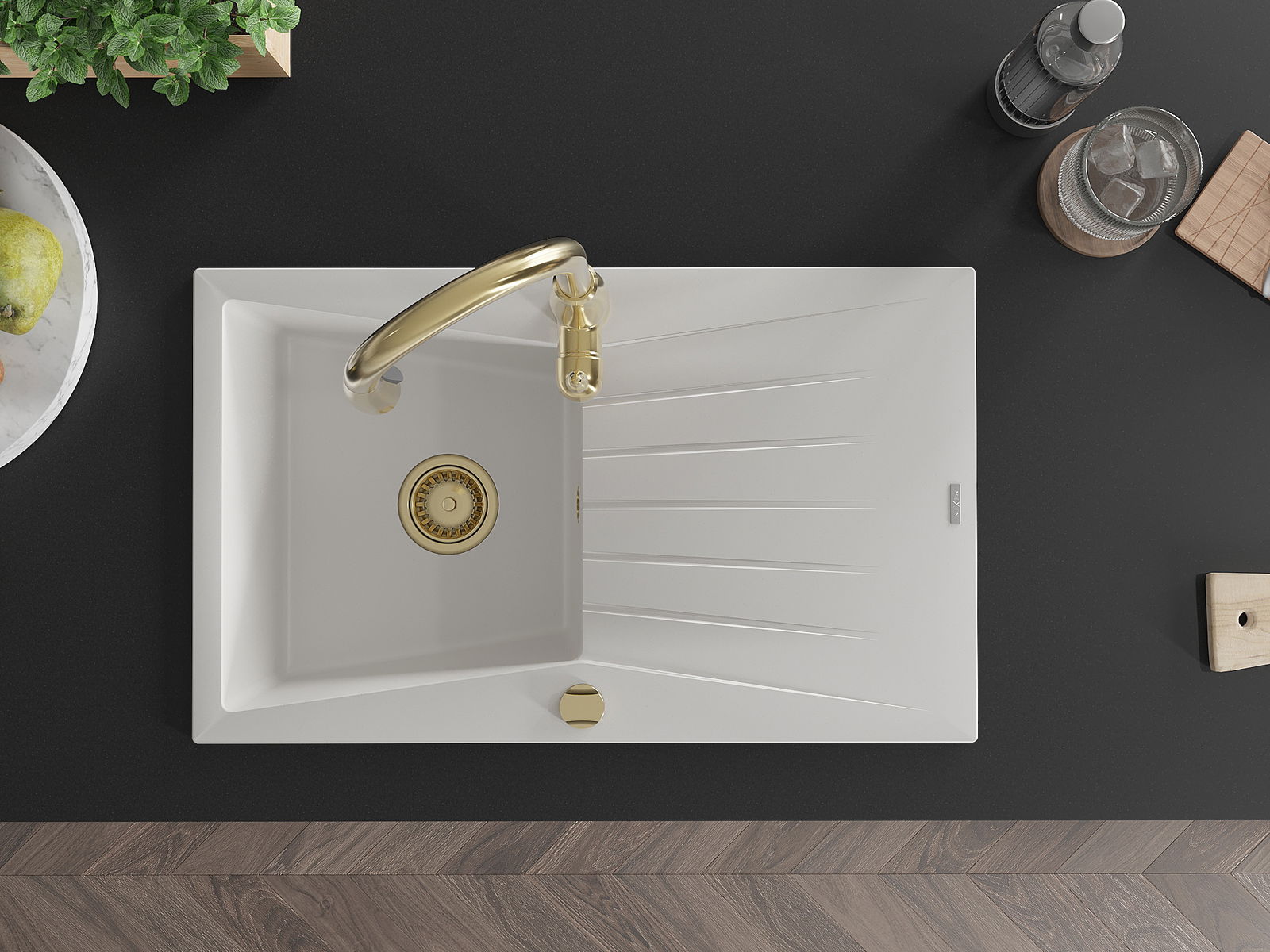 Choosing a sink with a draining board is a practical solution that allows you to set aside washed dishes or vegetables and fruits. The draining board makes daily cooking easier and helps maintain order in the kitchen.