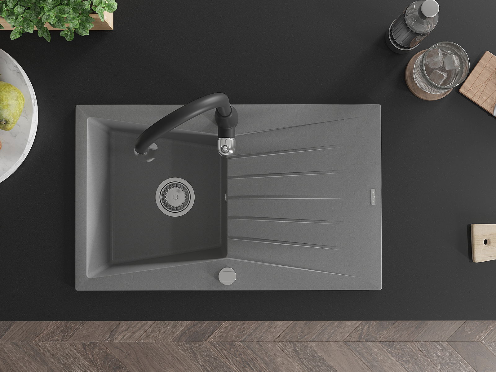 The sink is made from high-quality granite. It serves as an elegant and, above all, practical addition to any kitchen, regardless of its style. The high quality and durability of granite ensure many years of use.