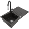 Mexen Cesar granite sink 1-compartment with drainer and Savita kitchen tap, grey - 6514-71-672601-70