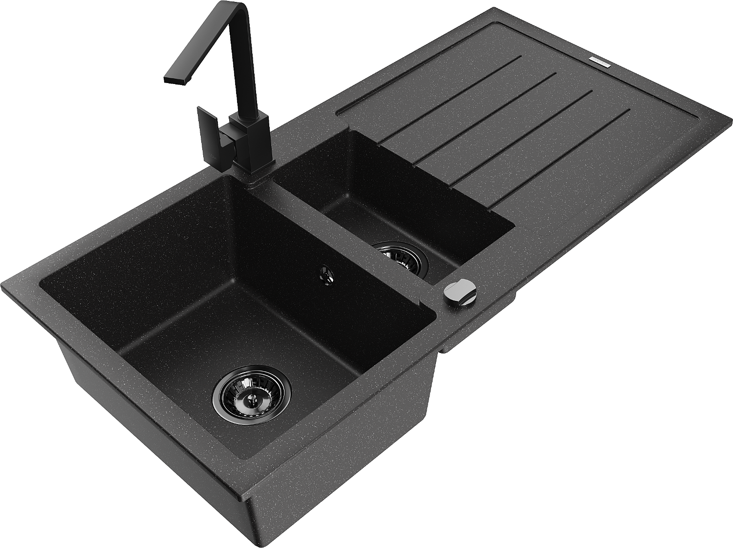 Mexen Andres granite sink 1.5-bowl with drainer and Rita kitchen tap, black/silver - 6515-73-670300-70-B