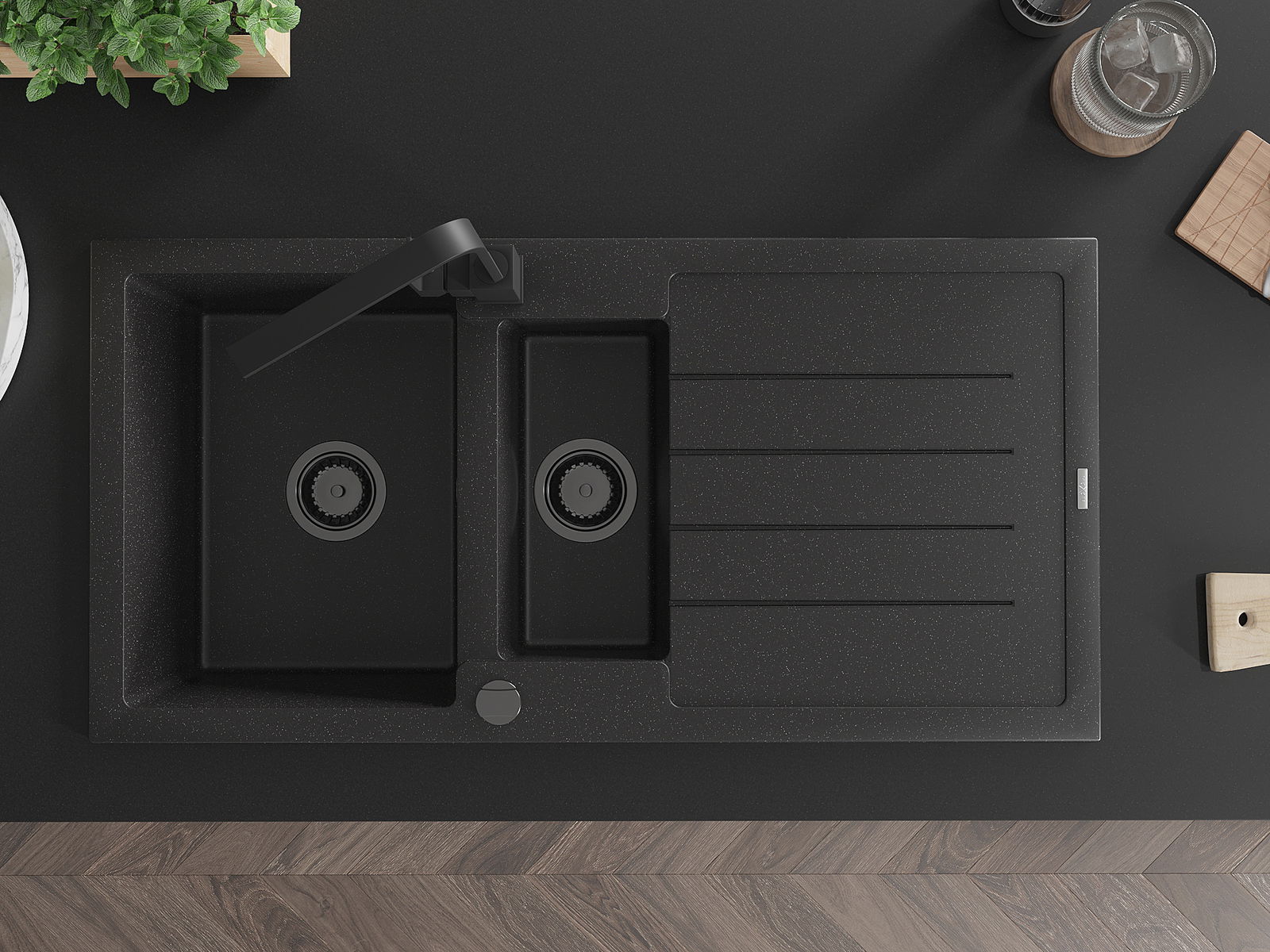 Choosing a sink with a draining board is a practical solution that allows you to set aside washed dishes or vegetables and fruits. The draining board makes daily cooking easier and helps maintain order in the kitchen.