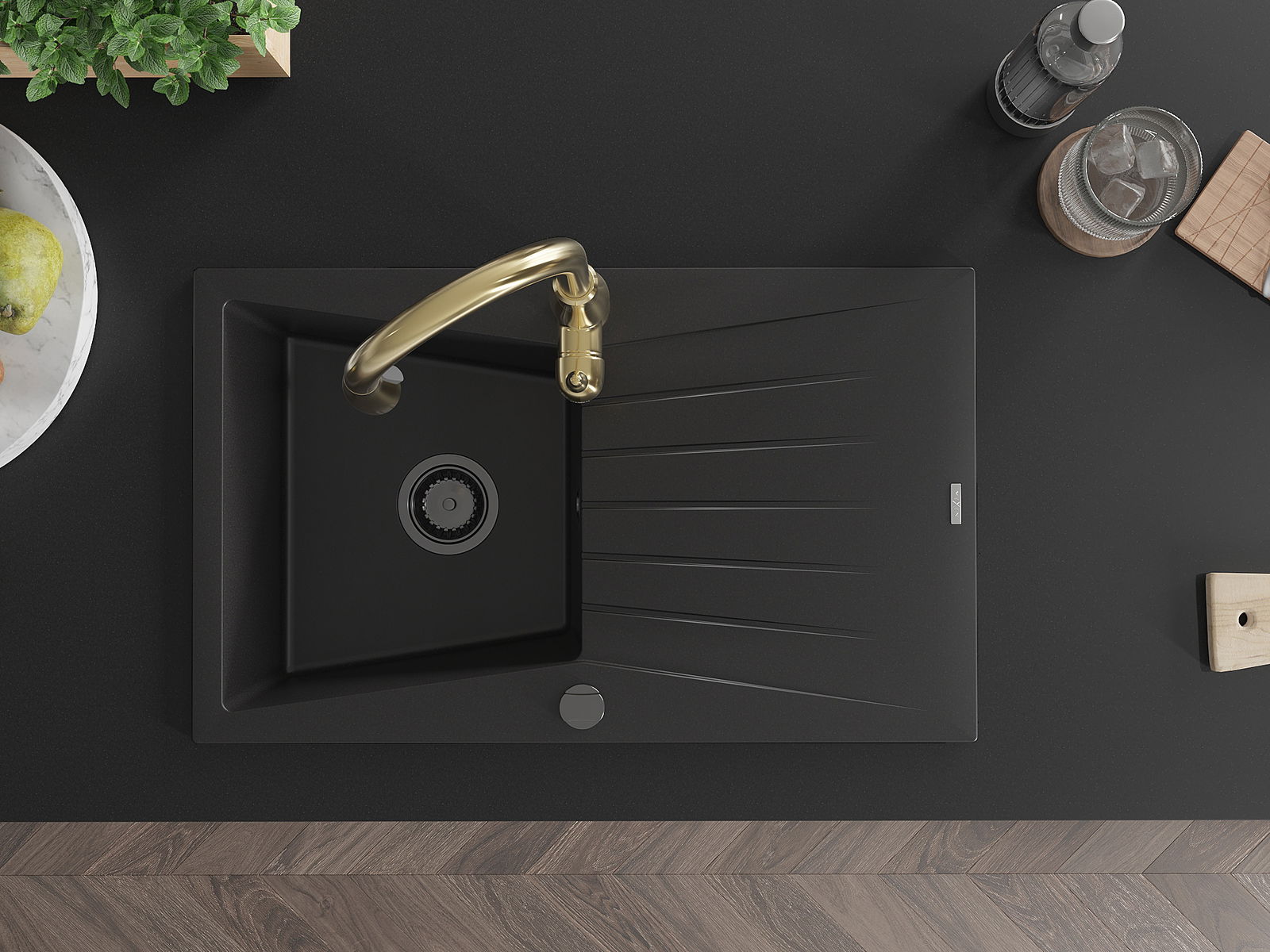 Choosing a sink with a draining board is a practical solution that allows you to set aside washed dishes or vegetables and fruits. The draining board makes daily cooking easier and helps maintain order in the kitchen.
