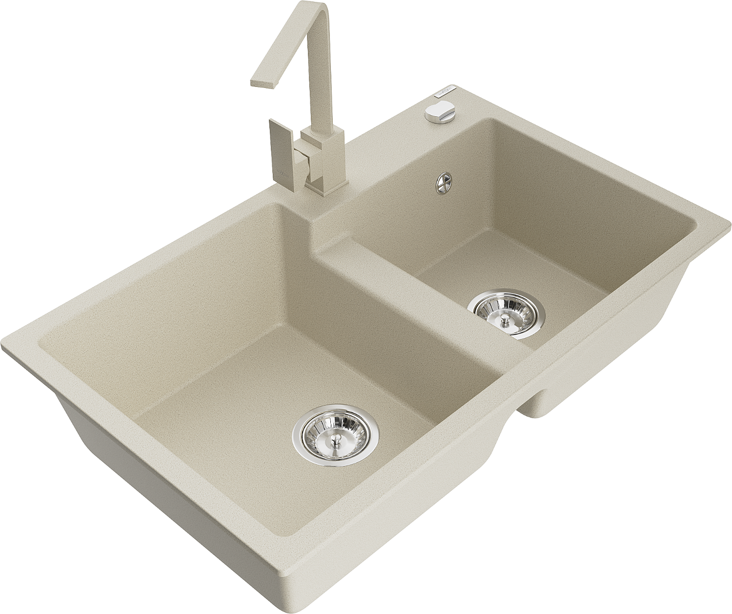 Mexen Tomas granite double sink with Rita kitchen tap, beige - 6516-69-670300-69