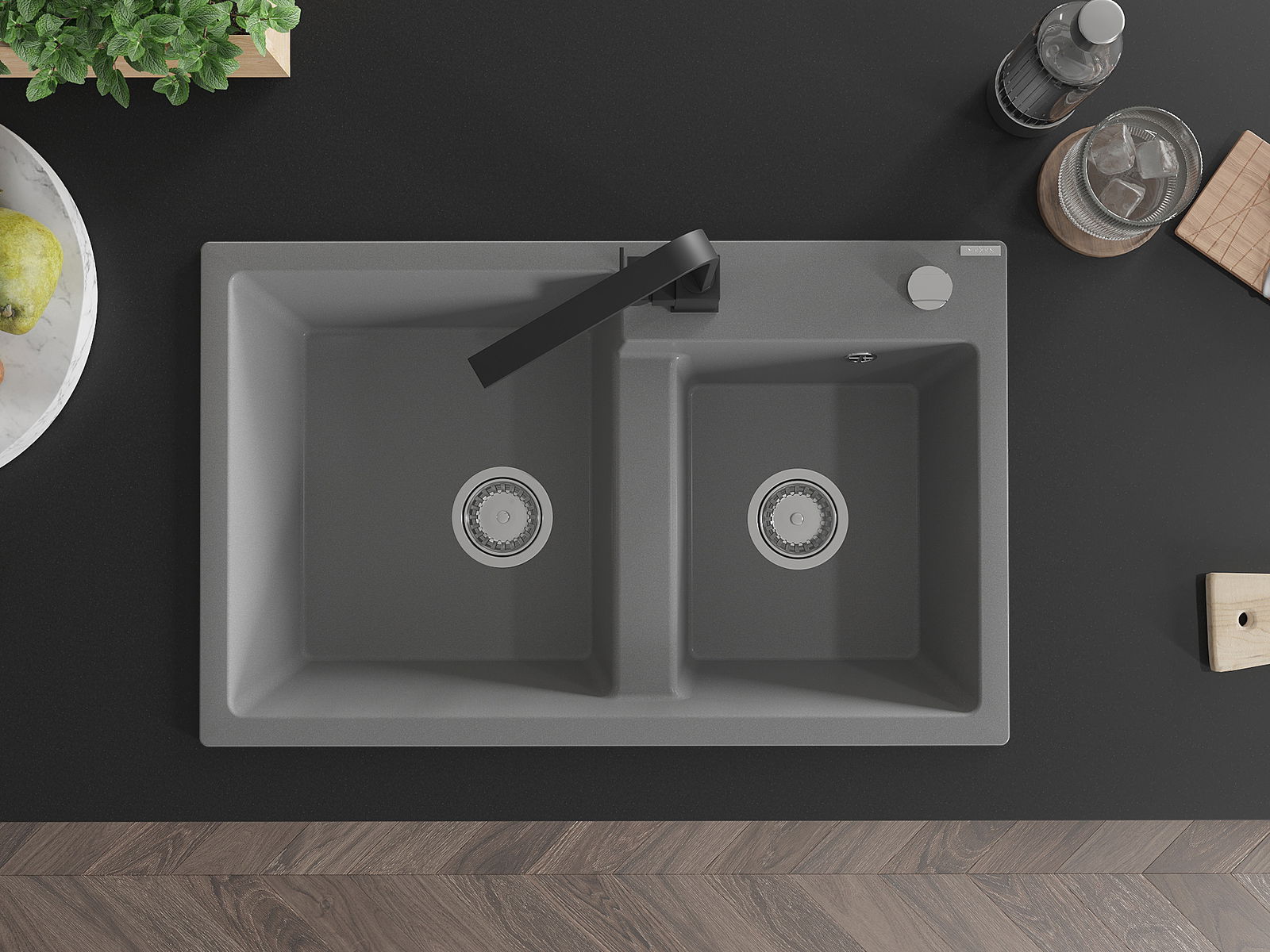 The surface of the sink is resistant to stains and discolouration, making it easy to maintain cleanliness and retain its colour for a long time of use. An aesthetic and practical addition to any kitchen.