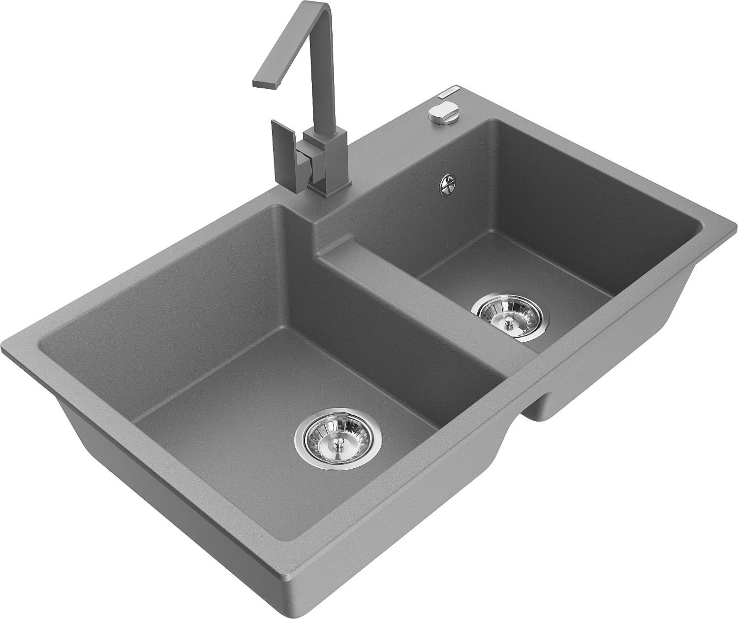 Mexen Tomas granite sink 2-chamber with kitchen tap Rita, grey - 6516-71-670300-71