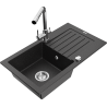 Mexen Pablo granite sink 1-bowl with drainer and Duero kitchen tap, black - 6510-77-671600-00