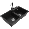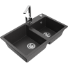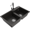 Mexen Tomas granite sink 2-bowl with kitchen tap Rita, black/silver metallic - 6516-73-670300-00