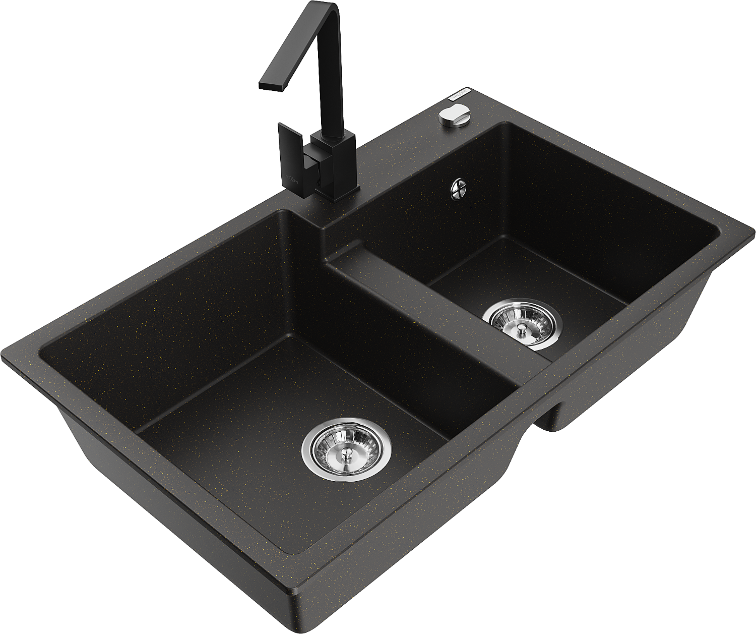 Mexen Tomas 2-bowl granite sink with Rita kitchen tap, black/golden metallic - 6516-75-670300-70