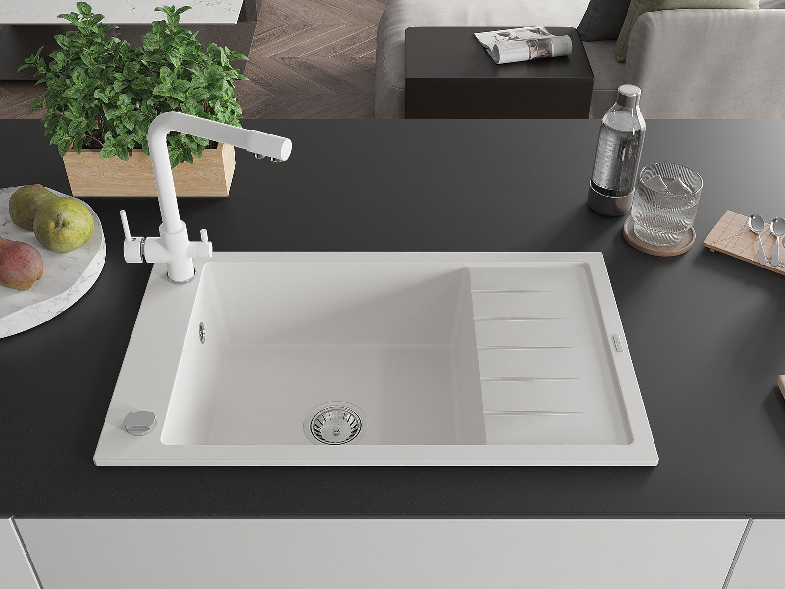 Choosing a sink with a draining board is a practical solution that allows you to set aside washed dishes or vegetables and fruits. The draining board makes daily cooking easier and helps maintain order in the kitchen.