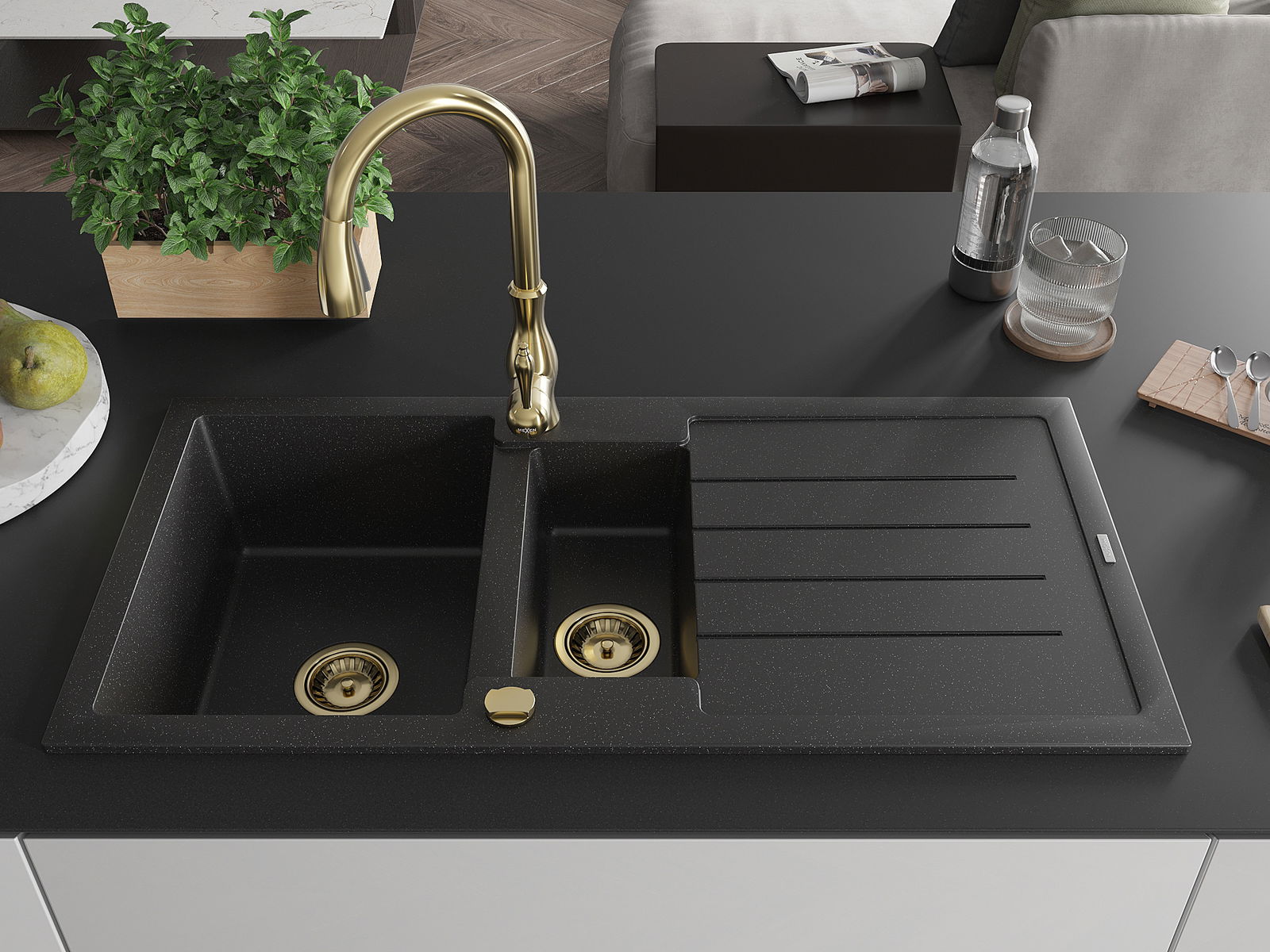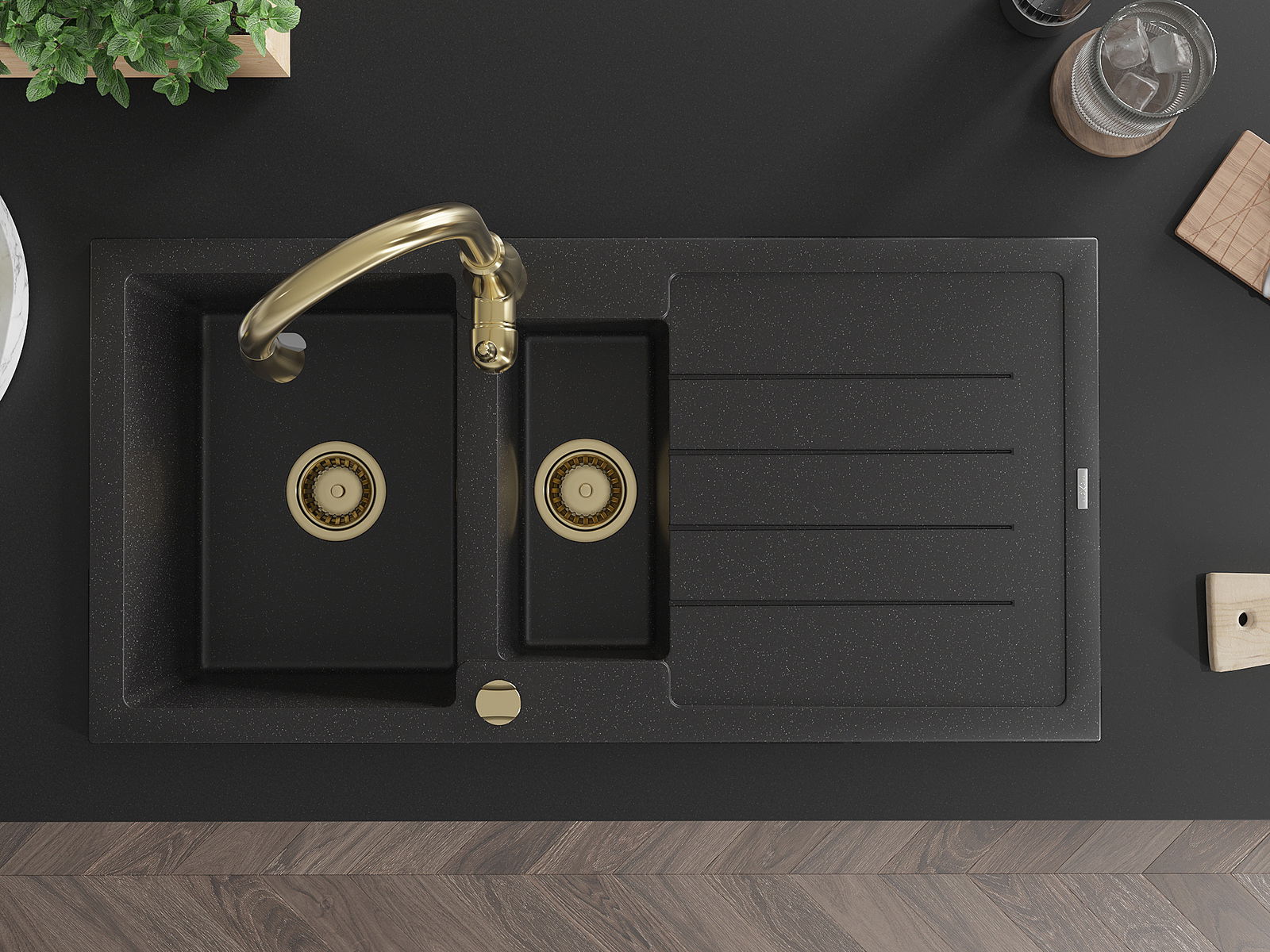 Choosing a sink with a draining board is a practical solution that allows you to set aside washed dishes or vegetables and fruits. The draining board makes daily cooking easier and helps maintain order in the kitchen.