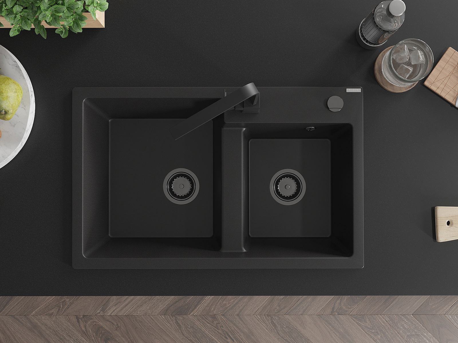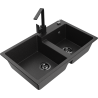 Mexen Tomas 2-bowl granite sink with Rita kitchen tap, black - 6516-77-670300-70-B