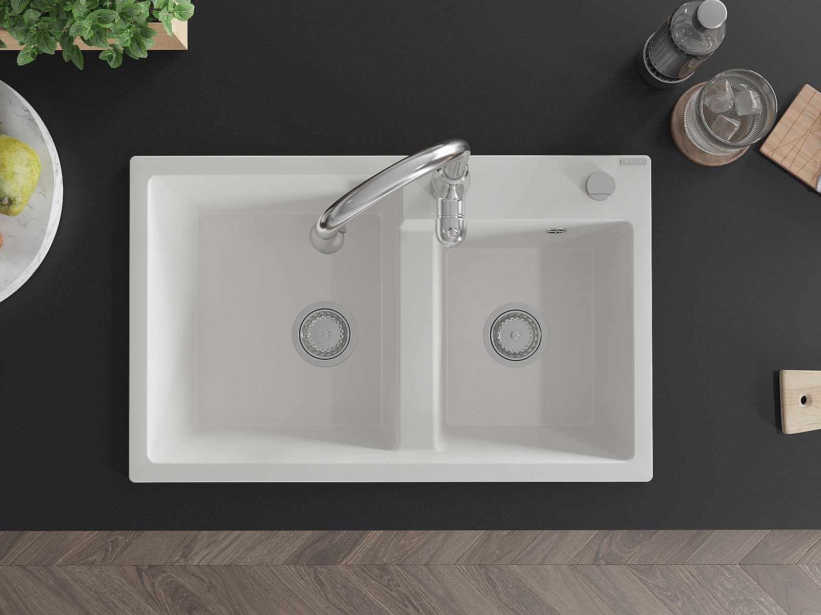 The surface of the sink is resistant to stains and discolouration, making it easy to maintain cleanliness and retain its colour for a long time of use. An aesthetic and practical addition to any kitchen.