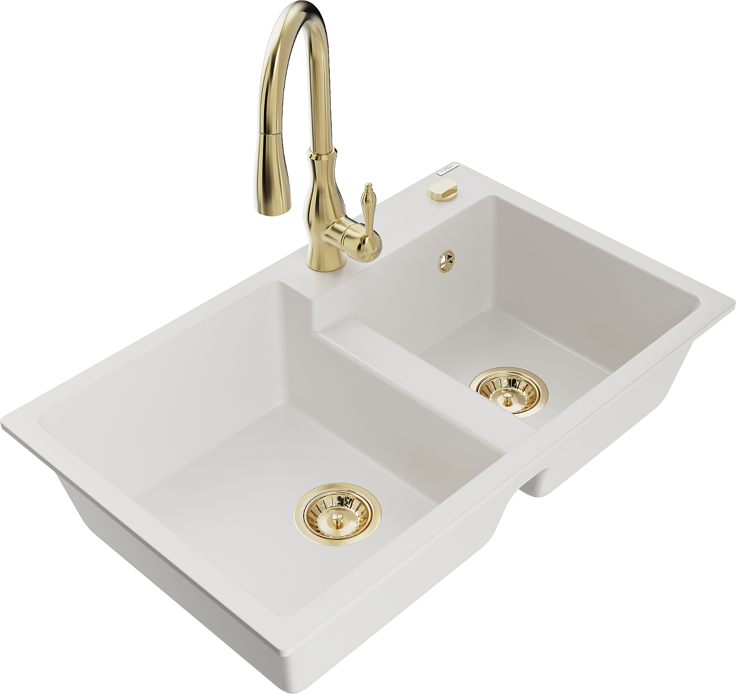 Mexen Tomas granite kitchen sink 2-bowl with Savita kitchen faucet, white - 6516-20-672601-50