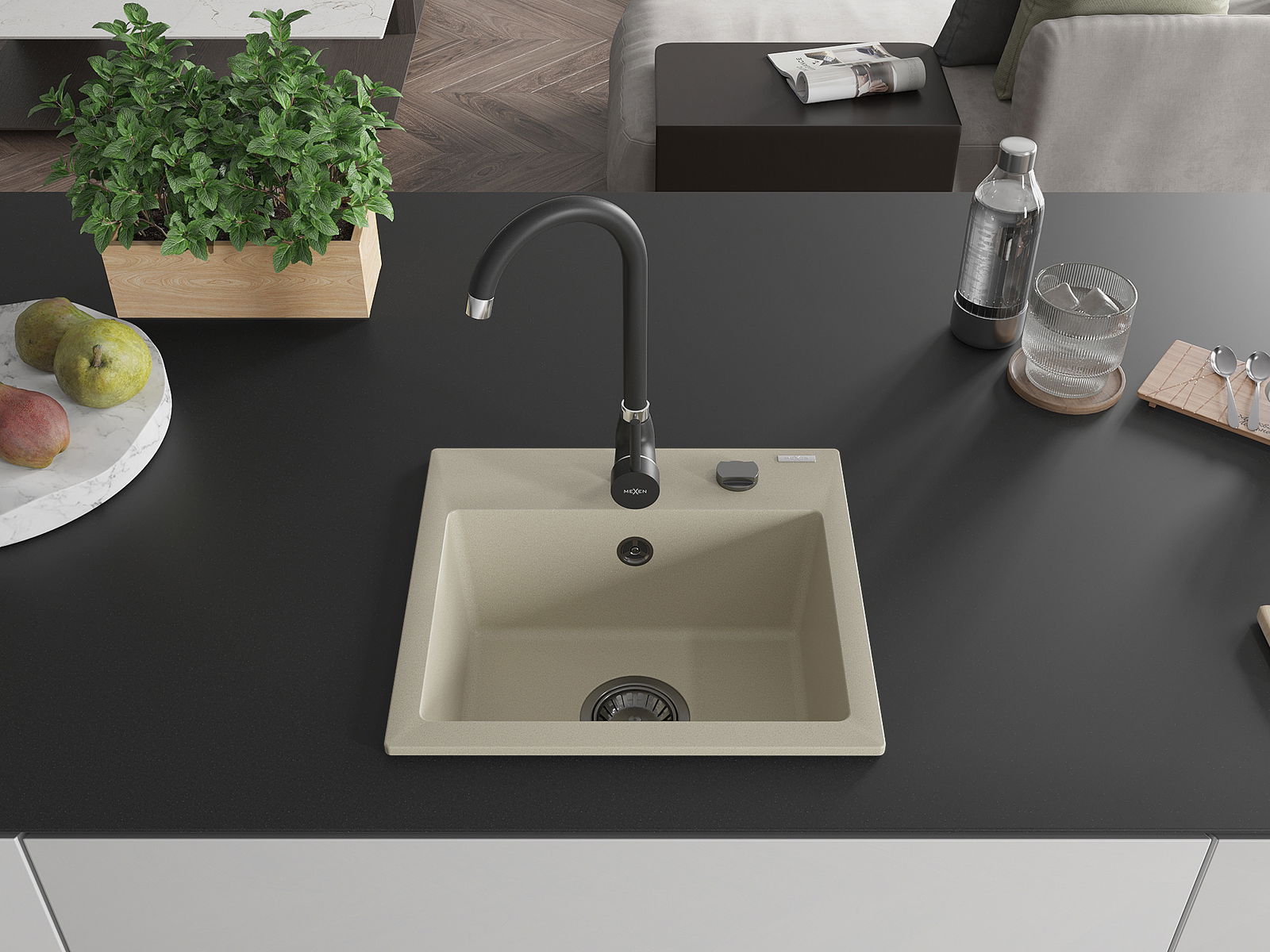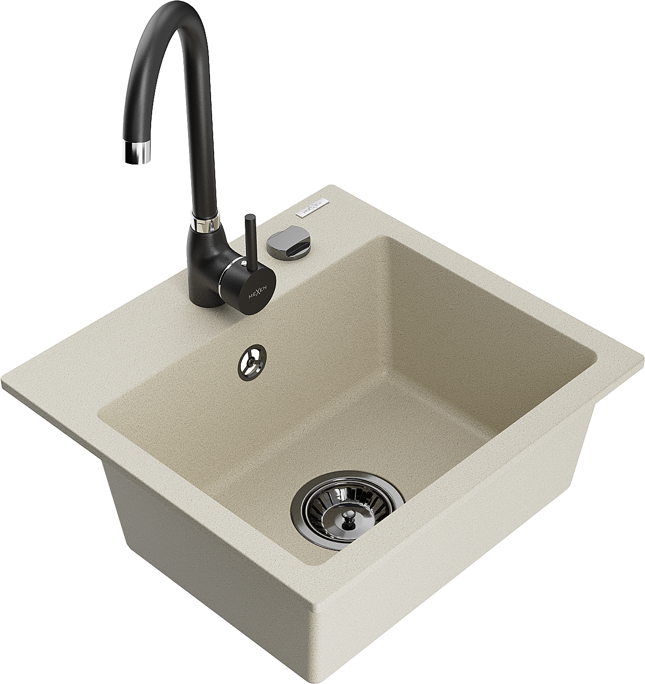 Mexen Milo 1-bowl granite sink with Telma kitchen tap, beige - 6505-69-670200-70