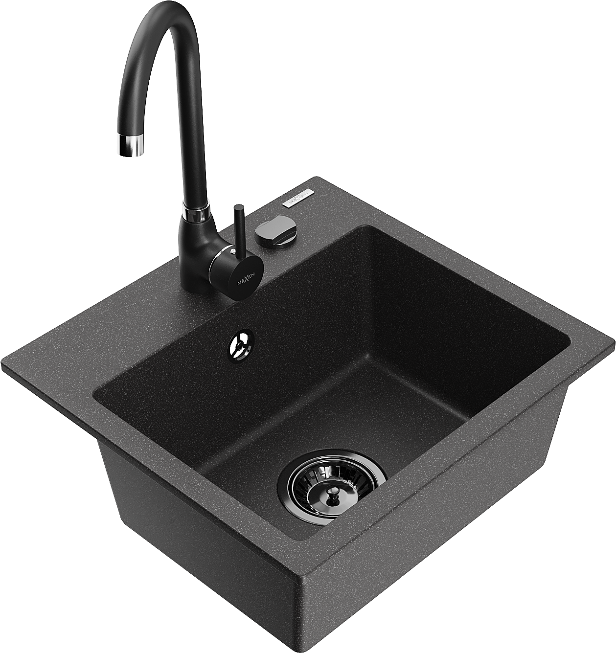 Mexen Milo 1-bowl granite kitchen sink with Telma kitchen tap, black speckled - 66505-76-670200-70-B