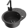 Mexen Kevin granite sink 1-bowl with drainer and kitchen tap Rita, black - 6517-77-670300-70-B
