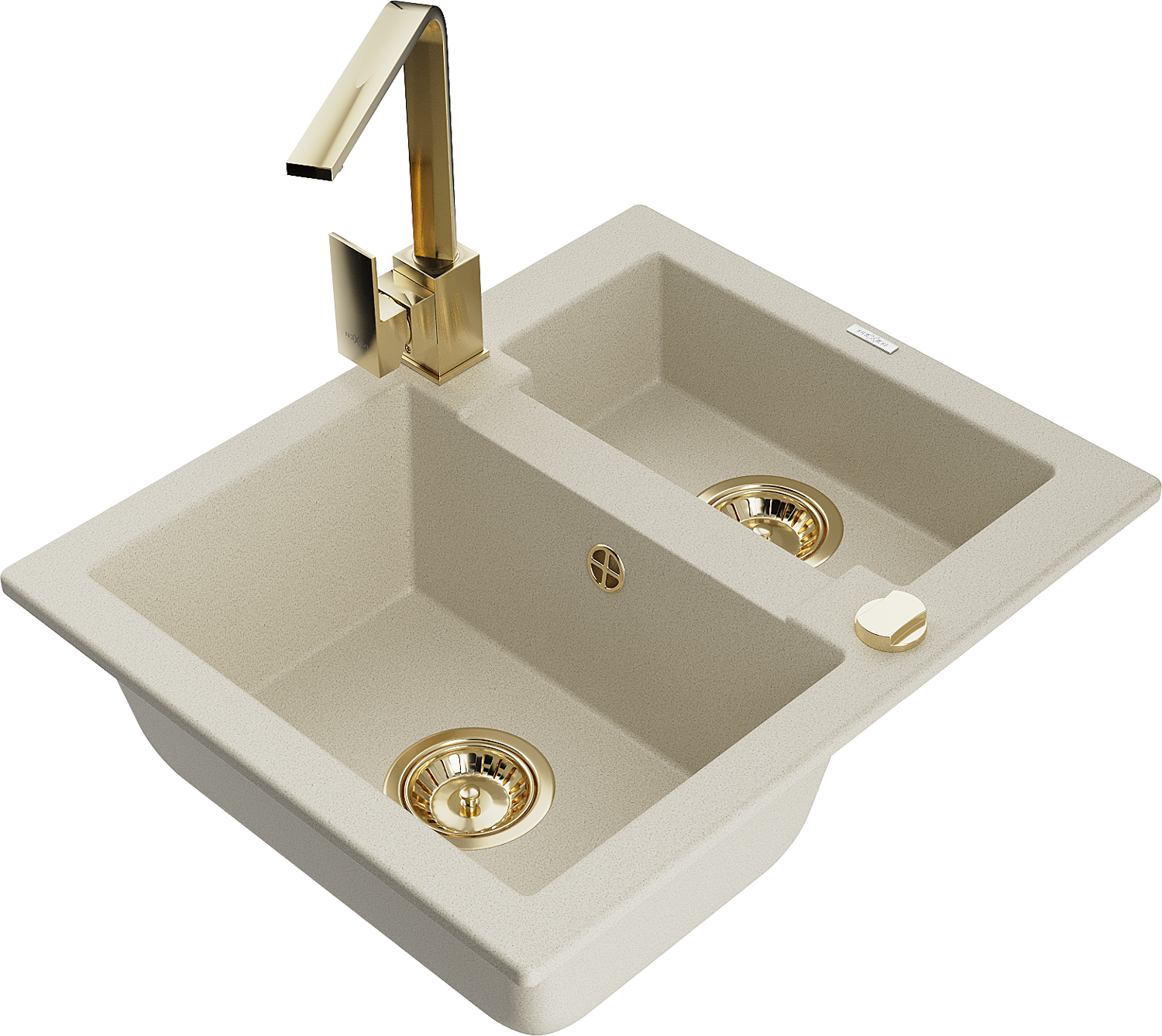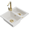 Mexen Carlos granite sink 1.5-bowl with Rita kitchen tap, beige - 6518-69-670300-50