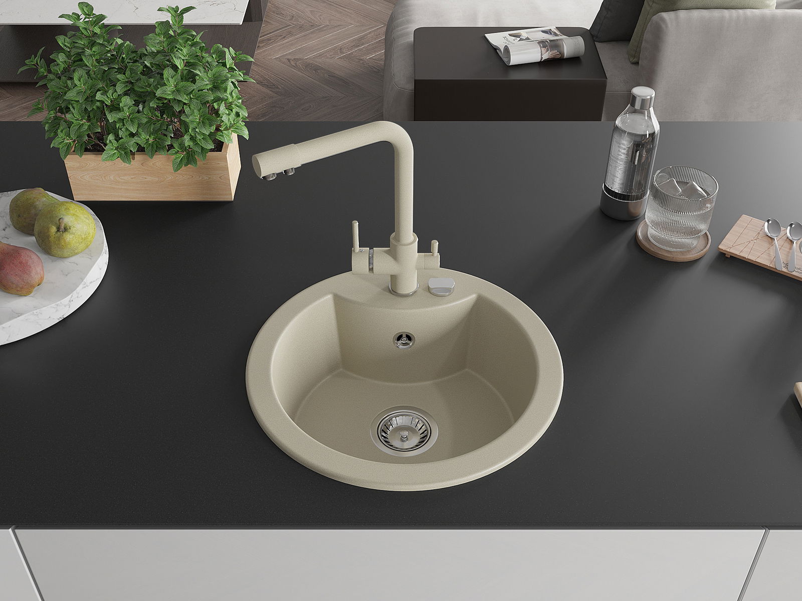 The sink is made from high-quality granite. It serves as an elegant and, above all, practical addition to any kitchen, regardless of its style. The high quality and durability of granite ensure many years of use.