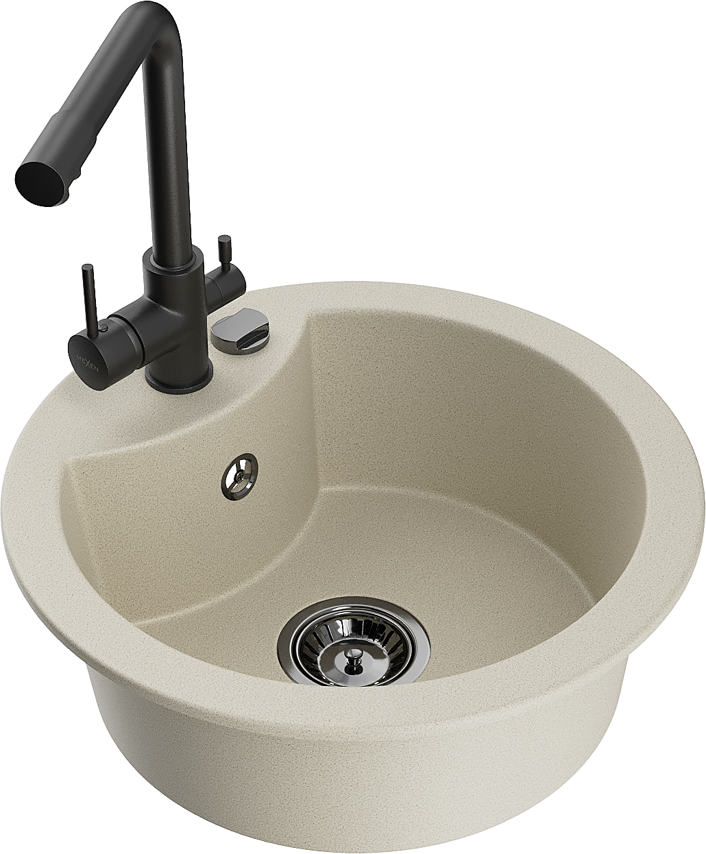 The surface of the sink is resistant to stains and discolouration, making it easy to maintain cleanliness and retain its colour for a long time of use. An aesthetic and practical addition to any kitchen.