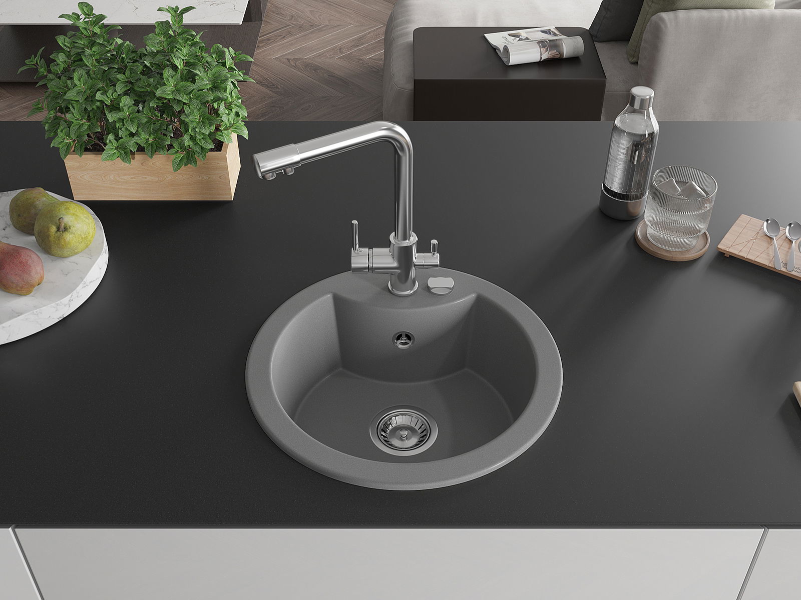 The sink is made from high-quality granite. It serves as an elegant and, above all, practical addition to any kitchen, regardless of its style. The high quality and durability of granite ensure many years of use.
