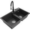 Mexen Tomas granite 2-bowl sink with Savita kitchen tap, black - 6516-77-672601-70