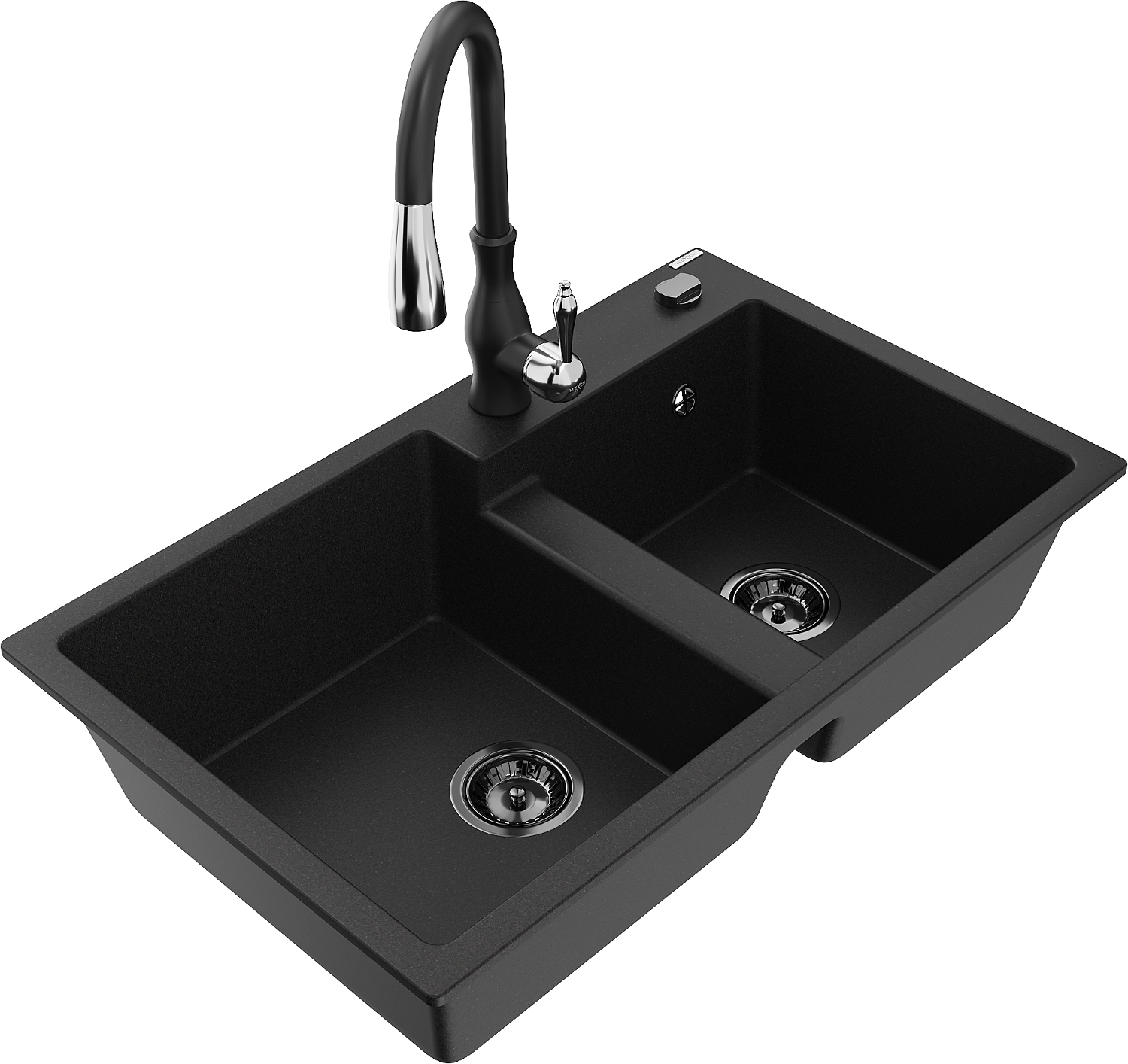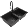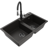 Mexen Tomas granite sink with two chambers and Savita kitchen tap, black - 6516-77-672601-70-B