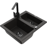 Mexen Carlos granite 1.5-bowl sink with Rita kitchen tap, black/silver metallic - 6518-73-670300-70-B