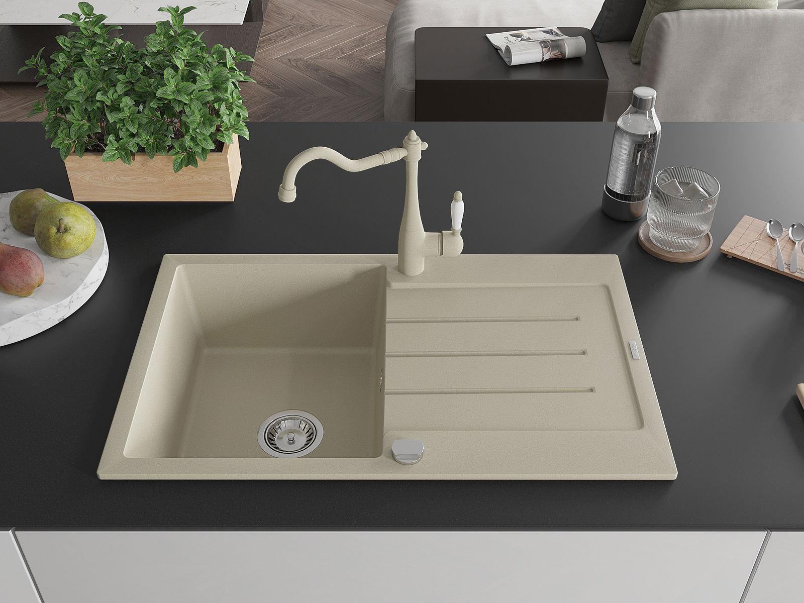 The sink is made from high-quality granite. It serves as an elegant and, above all, practical addition to any kitchen, regardless of its style. The high quality and durability of granite ensure many years of use.