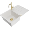 Mexen Bruno granite kitchen sink 1-bowl with drainer and Carla kitchen tap, grey - 6513-71-670700-50