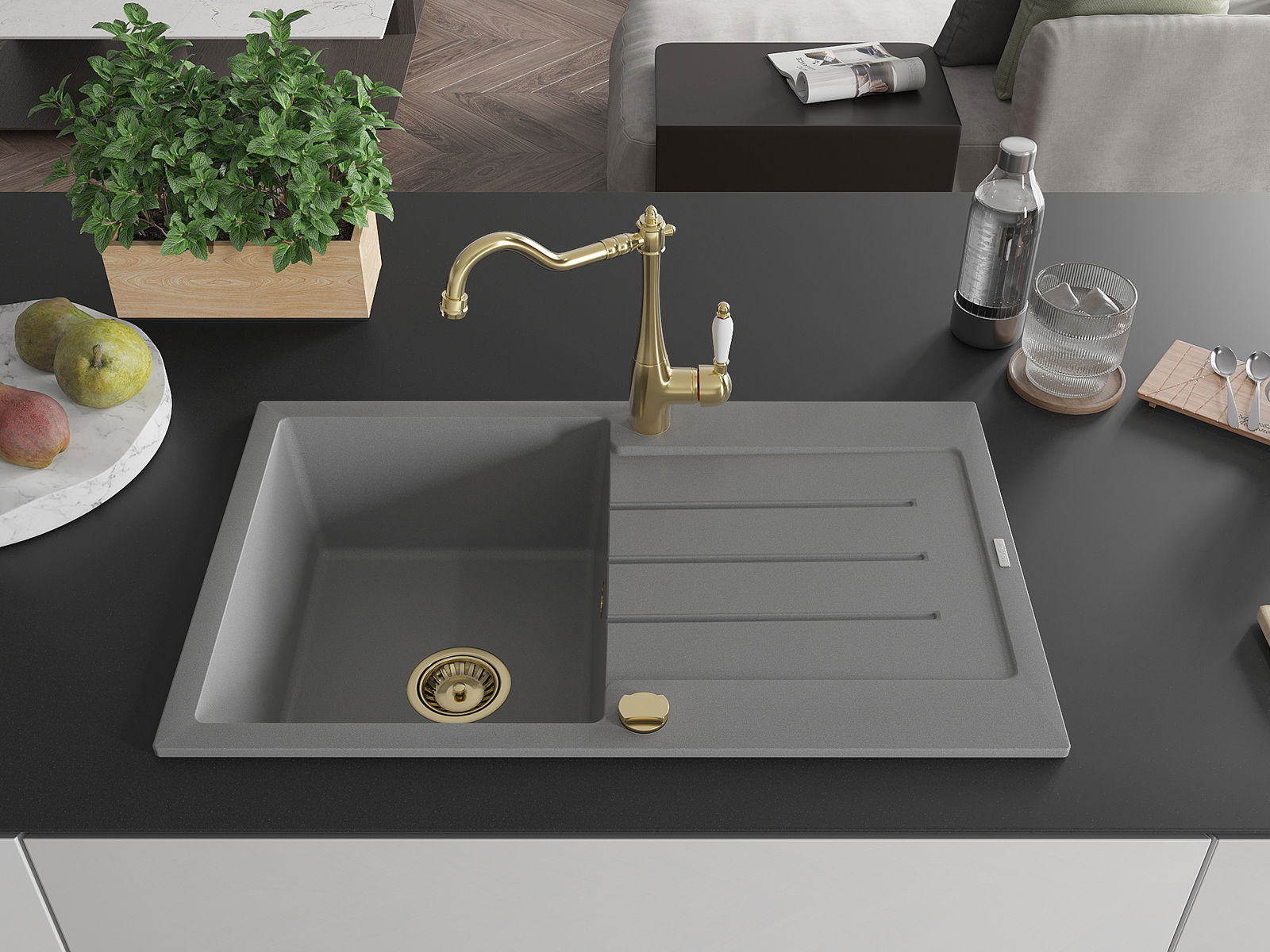 The sink is made from high-quality granite. It serves as an elegant and, above all, practical addition to any kitchen, regardless of its style. The high quality and durability of granite ensure many years of use.