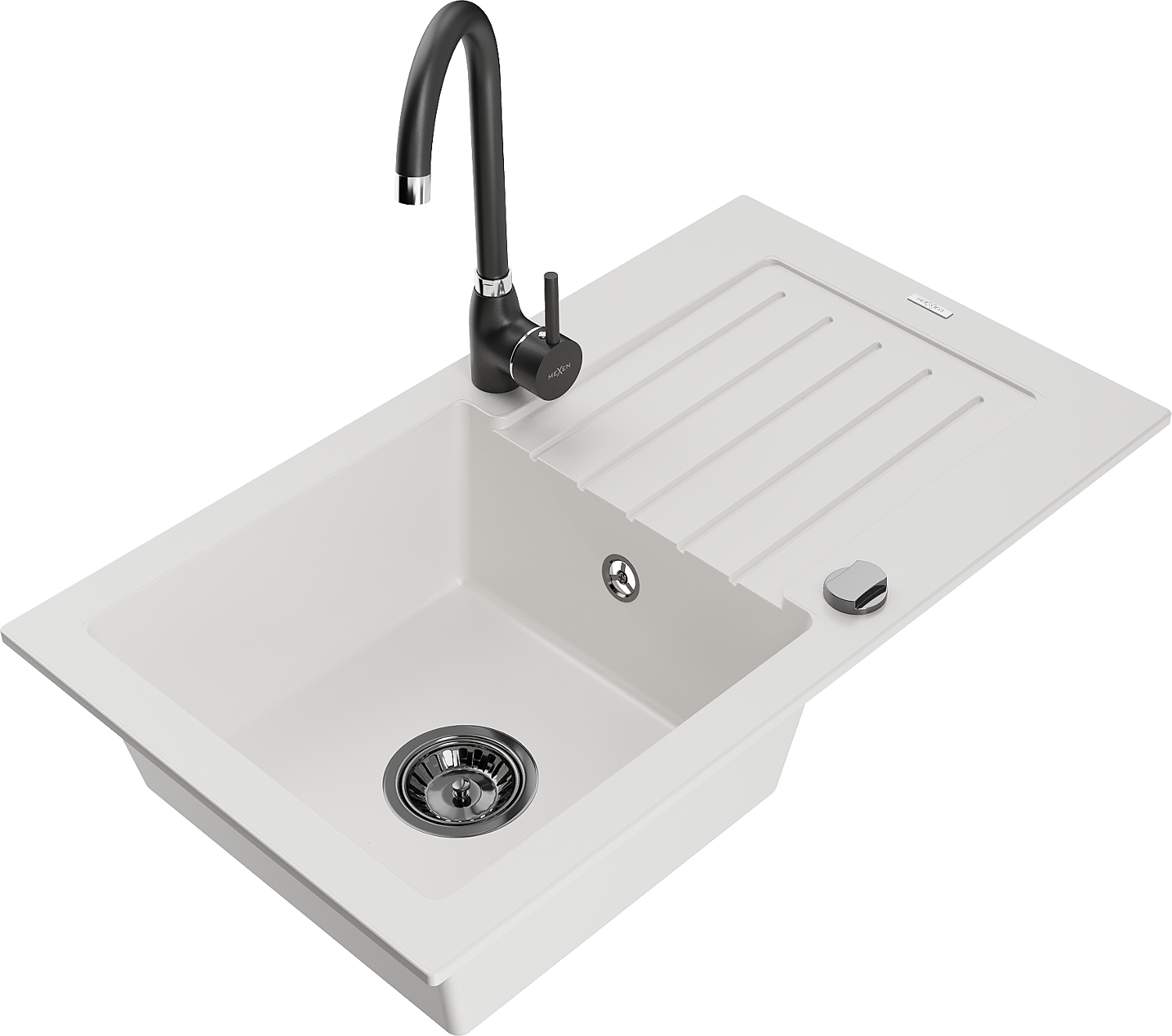 Mexen Pablo granite 1-bowl sink with drainer and Telma kitchen tap, white - 6510-20-670200-70