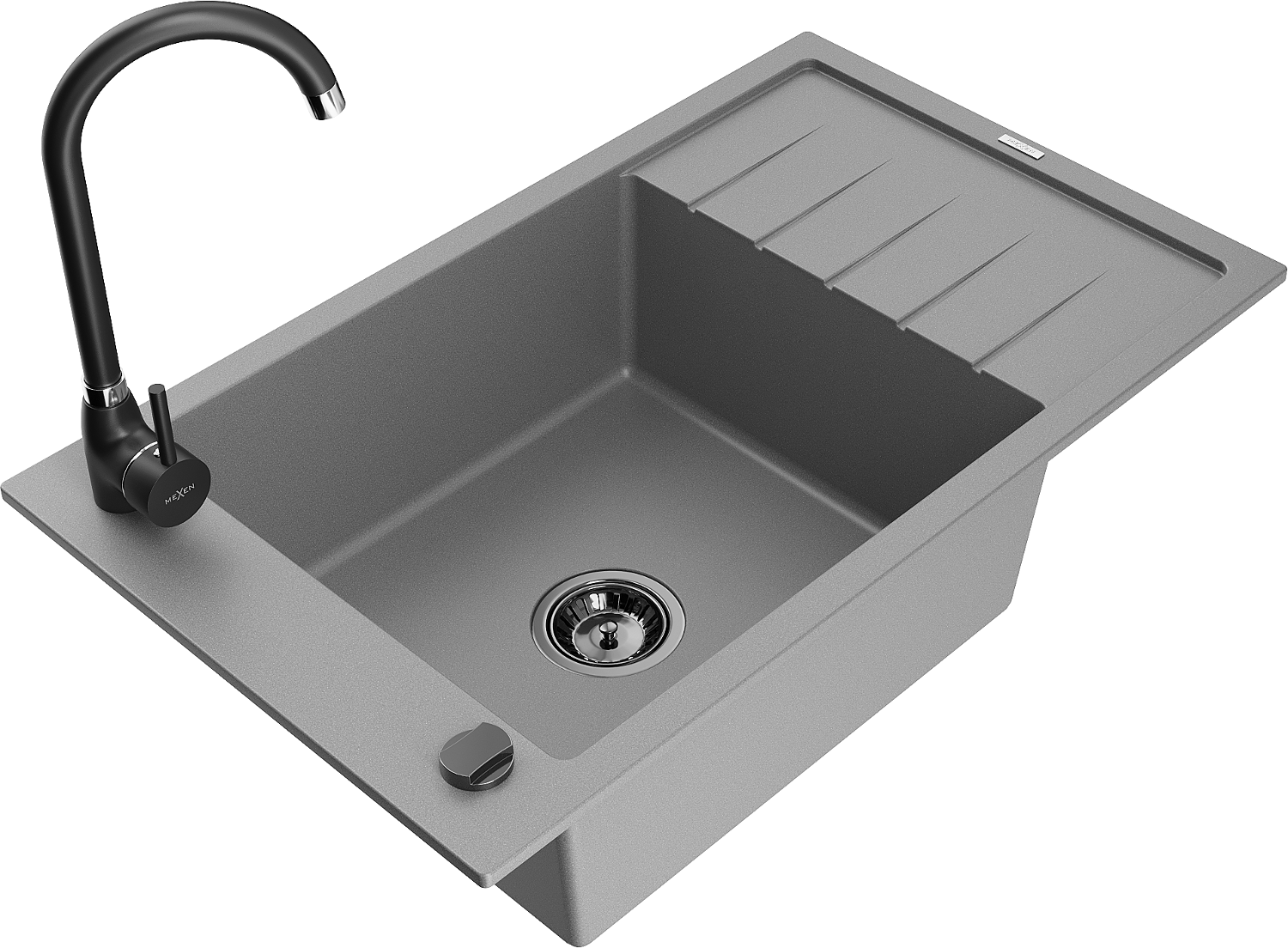 Mexen Elias granite sink 1-bowl with drainer and Telma kitchen faucet, grey - 6511-71-670200-70-B