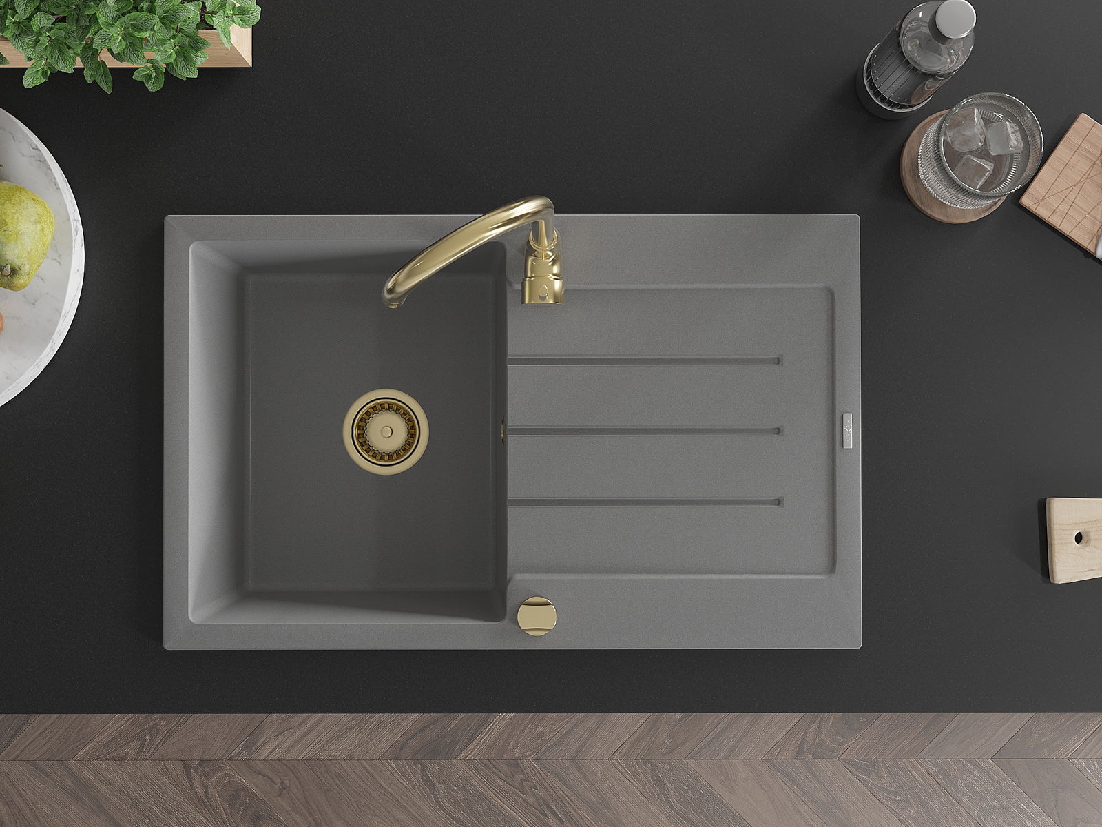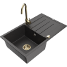 Mexen Bruno 1-bowl granite sink with drainer and Telma kitchen tap, grey - 6513-71-670200-50