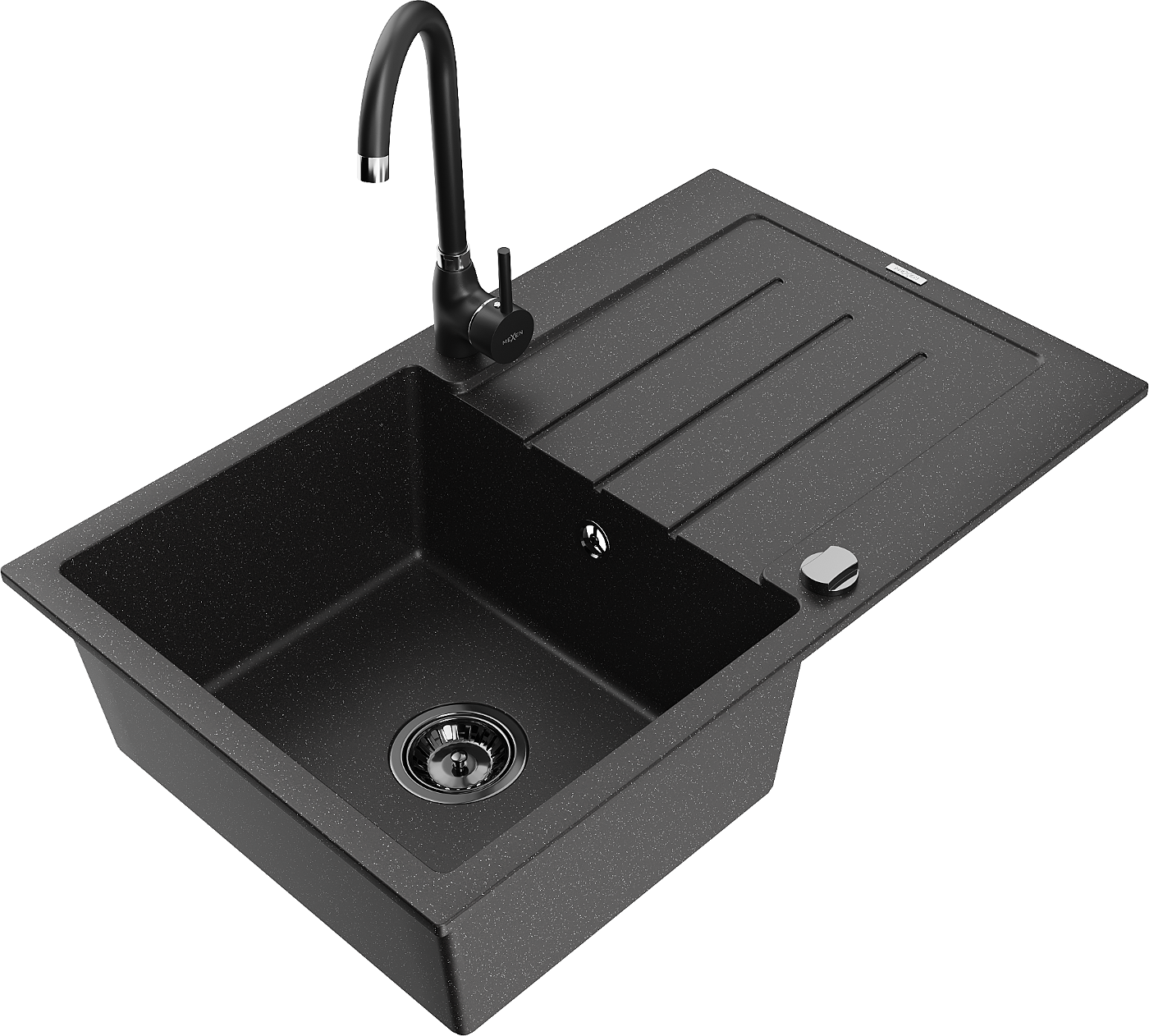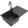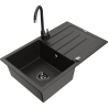 Mexen Bruno granite kitchen sink 1-bowl with drainer and Telma kitchen tap, black/silver - 6513-73-670200-70-B