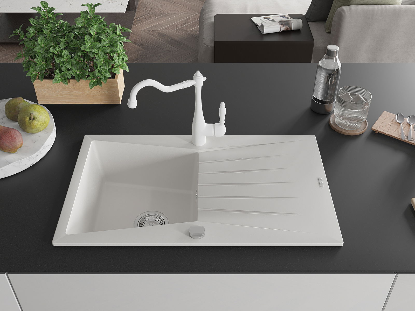 Choosing a sink with a draining board is a practical solution that allows you to set aside washed dishes or vegetables and fruits. The draining board makes daily cooking easier and helps maintain order in the kitchen.